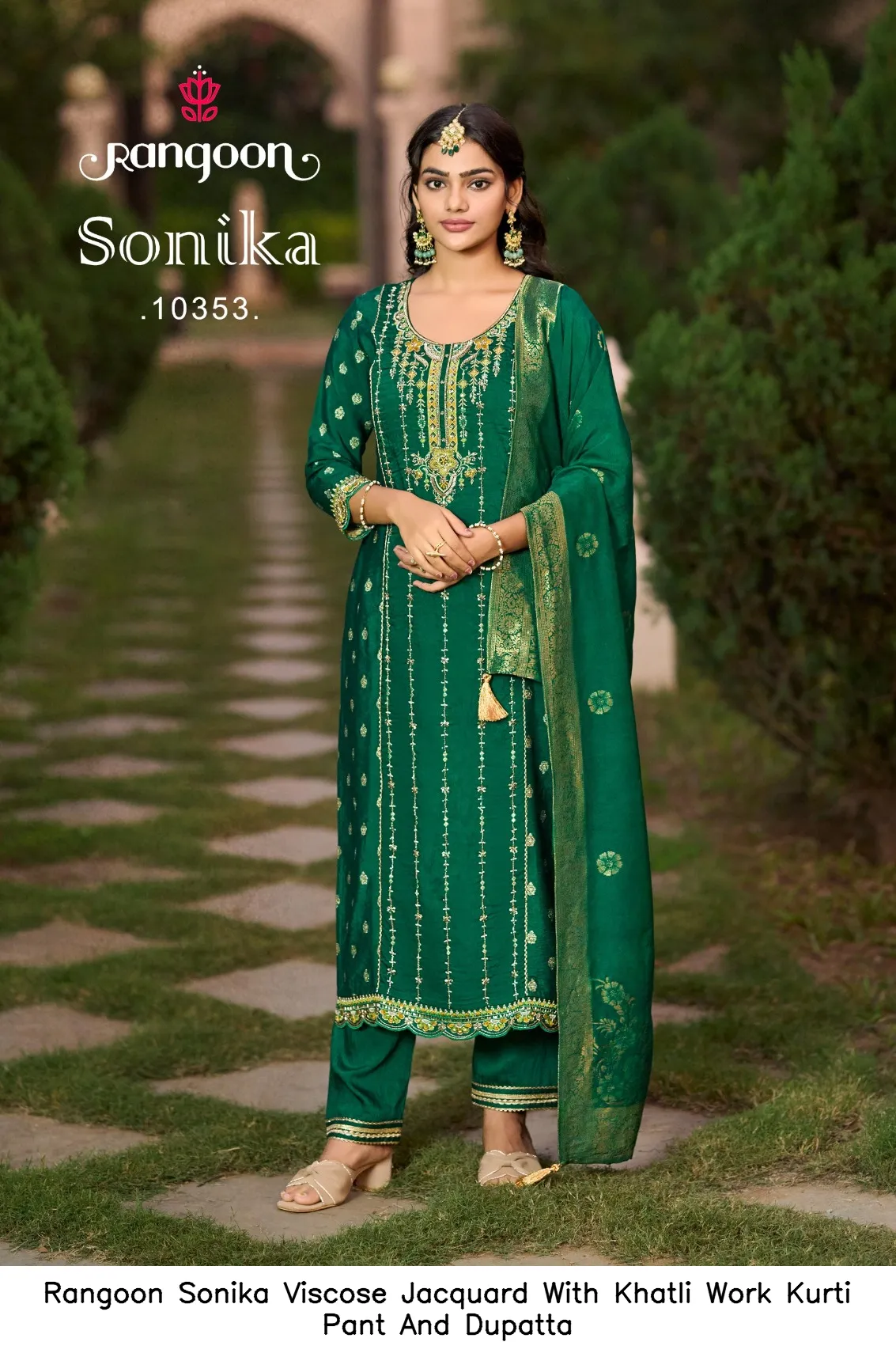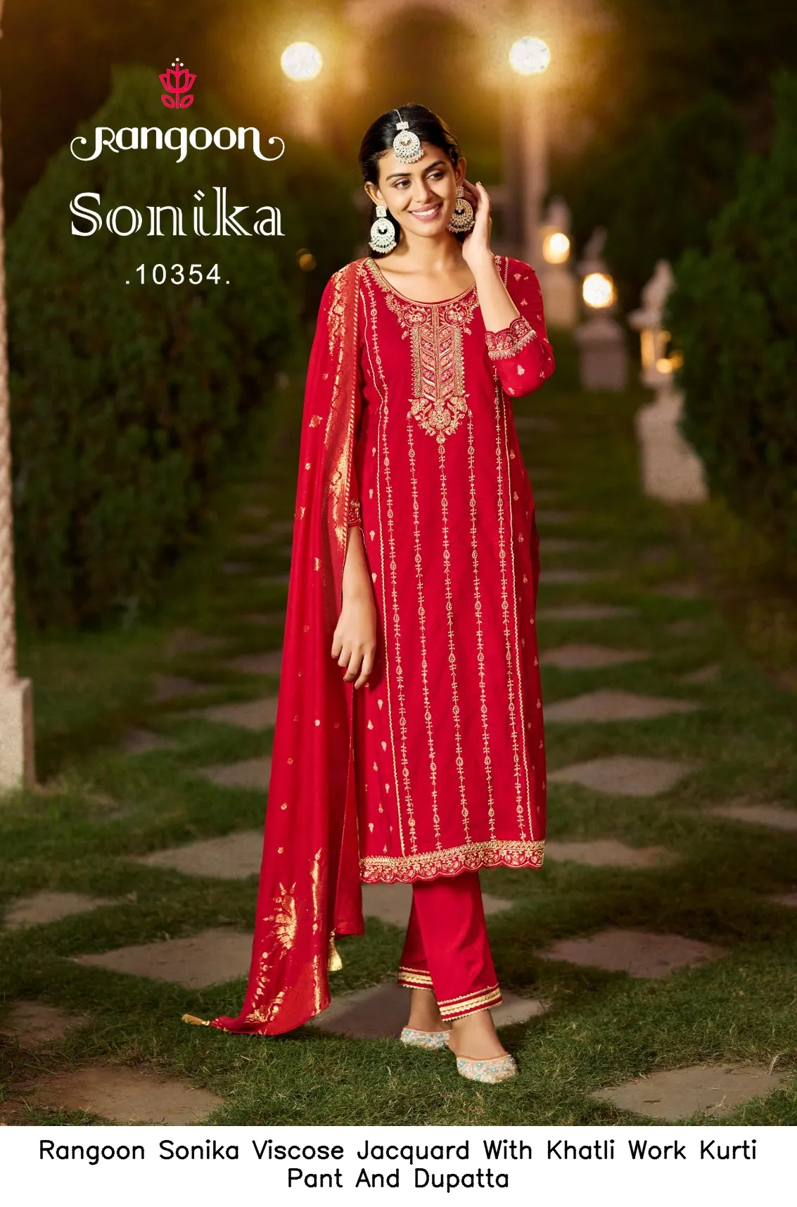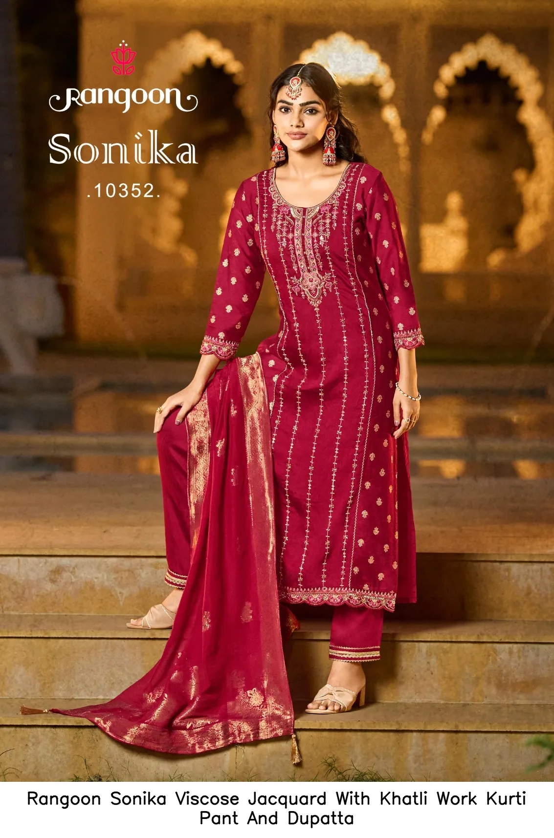 Rangoon Sonika Viscose Jacquard With Khatli Work Kurti Pant And Dupatta