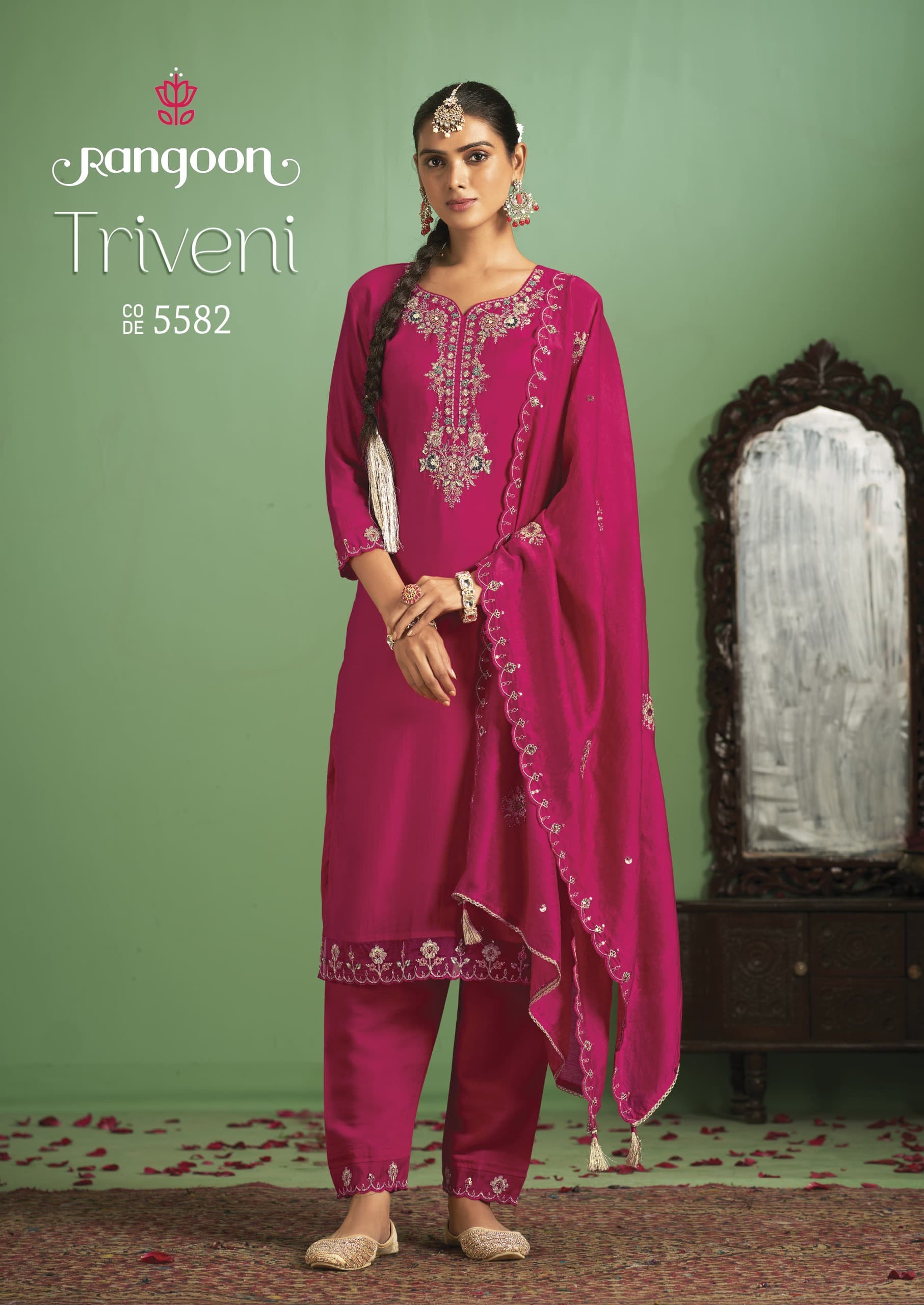 Rangoon Triveni Embroidery Silk Wholesale Designer Salwar Suit Collection