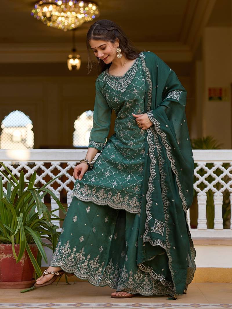 • Bottom: Chinon with Embroidery & Sequence Work | Inner: Santoon Silk | Length: Upto 42″