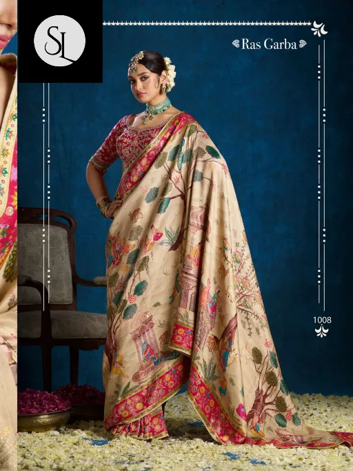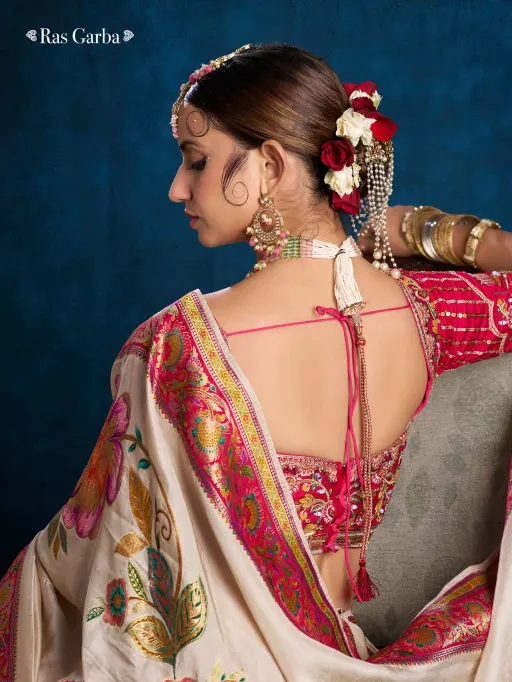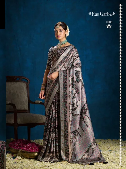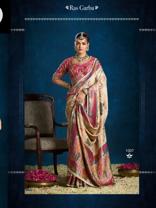 - Step into the festive spotlight with the newly launched Ras Garba Collection, a celebration of timeless tradition and modern elegance. Crafted in luxurious premium Zari Dola Silk, each saree showcases rich weaving and intricate heritage-inspired patterns, designed to reflect royal charm with a contemporary edge.
