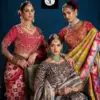 - Adding to its versatility, every saree comes with two blouse options—a readymade heavy-work blouse for instant styling and an unstiched blouse for customized tailoring.