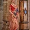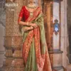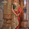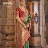 - Traditional Patola Weaving: The catalog showcases the art of Patola weaving, an ancient craft that involves resist-dyeing each thread before weaving. The result is intricate geometric patterns and vibrant colors, making each saree a work of art.