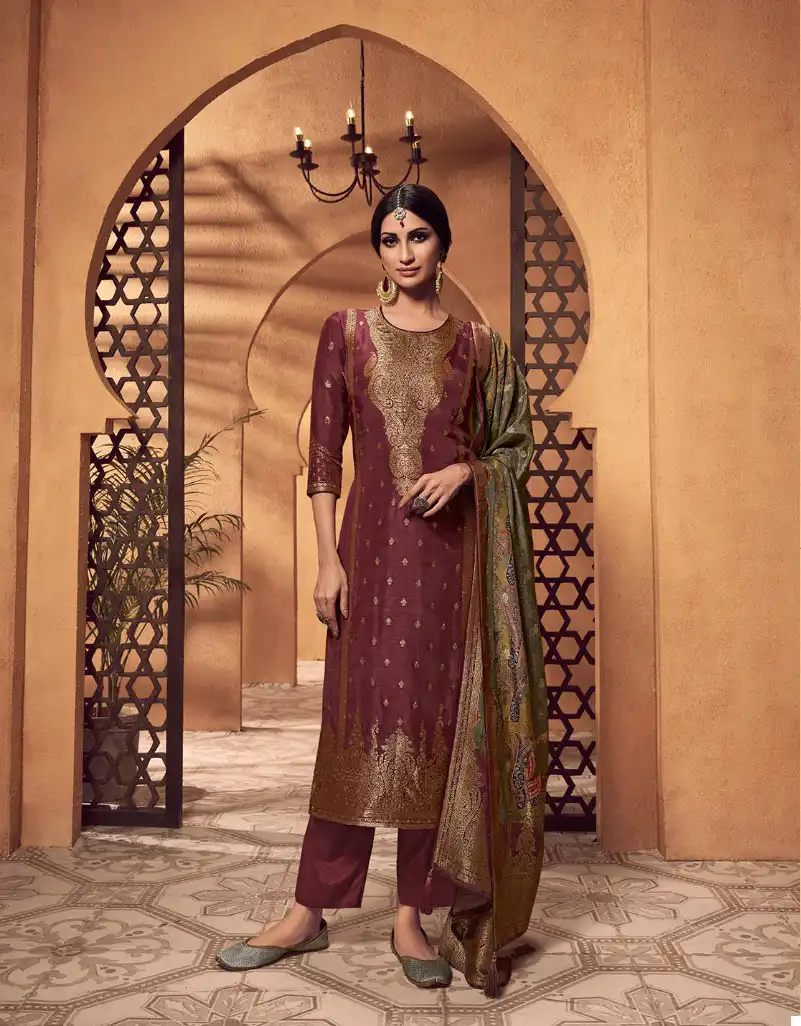 Renik Fashions Llp Heena Viscouse Dola Jacquard Wholesale Readymade Salwar Suit Catalog