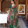 Silk Blouse: Complementing the saree is a matching Silk Blouse. Silk is renowned for its sheen and elegance, and it perfectly complements the richness of the saree. The blouse is designed to enhance your overall look and add a touch of glamour to your ensemble.
