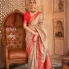 - A saree made from luxurious Banarasi silk, known for its rich texture and intricate weaving, offering a timeless and elegant appearance.