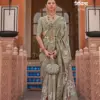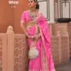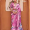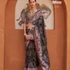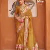 - A saree made from V.P. silk, featuring high-quality prints and an Ultima gold finish for a luxurious and elegant appearance.