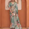 - A saree made from V.P. silk, featuring high-quality prints and an Ultima gold finish for a luxurious and elegant appearance.
