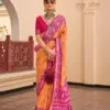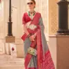 - Description: This saree is made from New P.V. Silk, enhanced with an Apoxy finish that provides a rich, glossy look and a smooth feel. The silk material offers a luxurious touch, making the saree perfect for formal and festive occasions. The Apoxy finish adds an elegant sheen, enhancing the overall appearance of the saree.