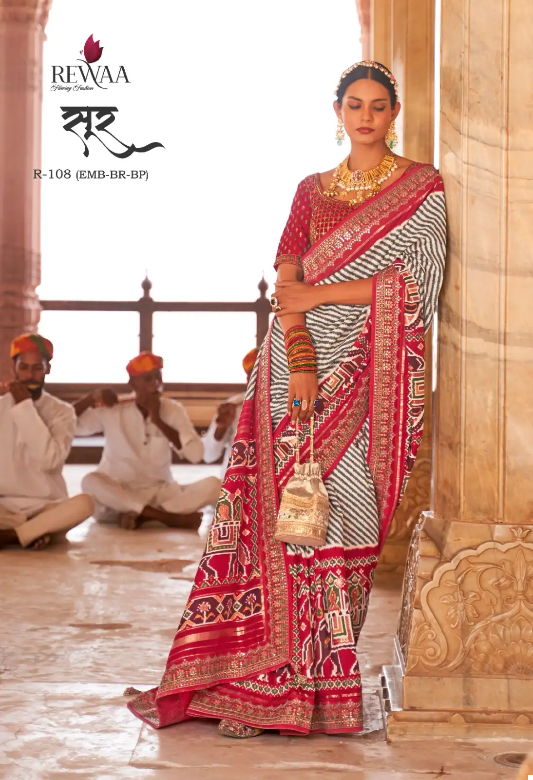 Each saree is adorned with intricate Sequins & Embroidery Heavy Work Border, adding a touch of glamour and luxury to your ensemble. The rich texture and vibrant hues of the saree make it a standout piece for any occasion, be it a wedding, festival, or special event.