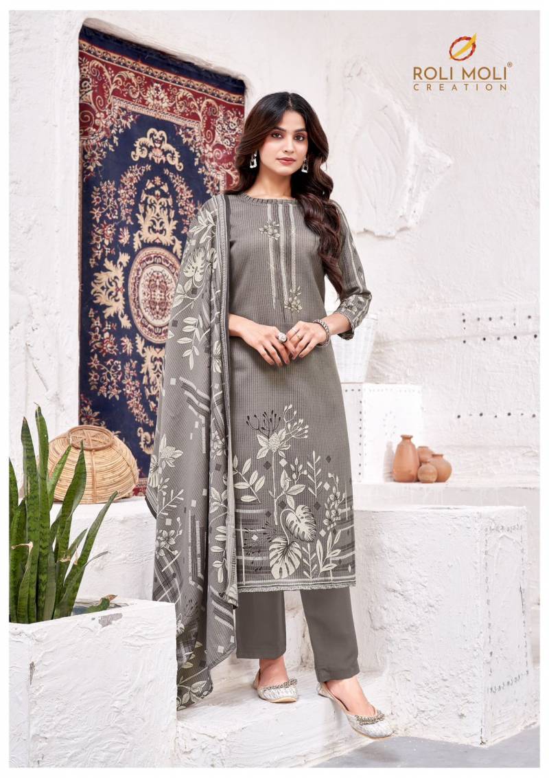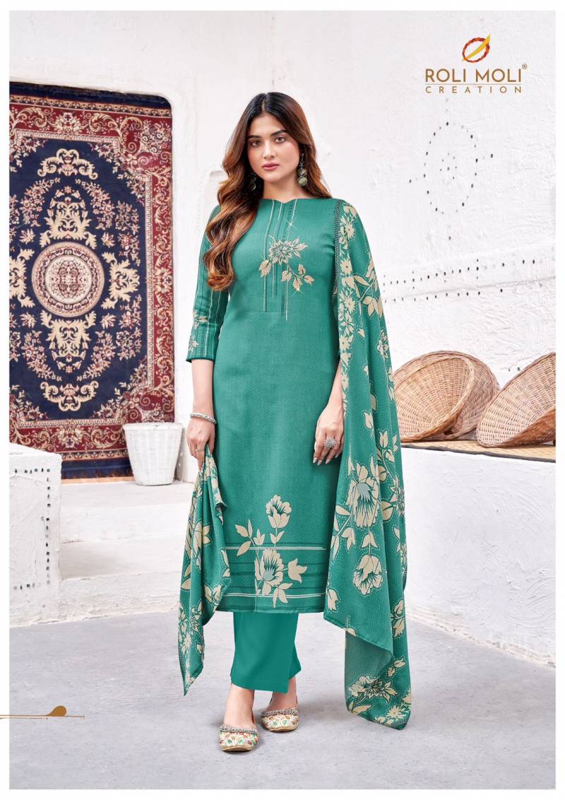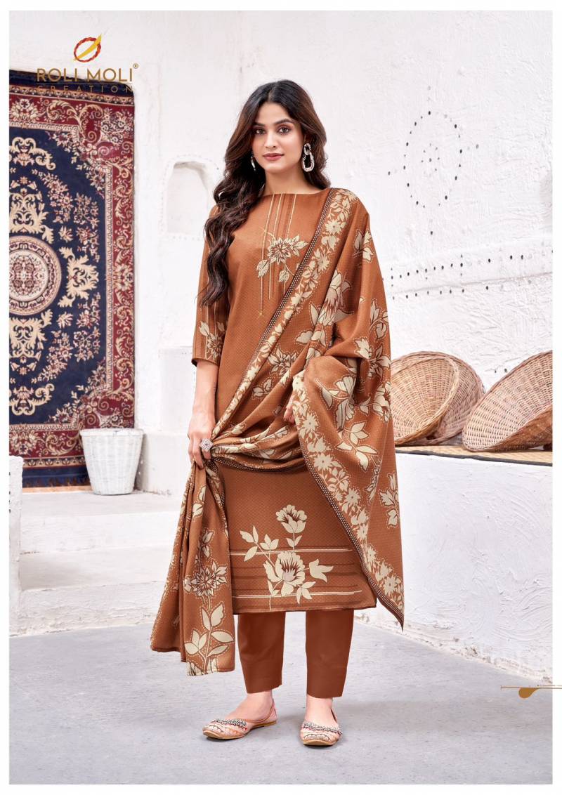 Buy Roli Moli Izhar Pashmina fancy dress material collection at a wholesale rate.