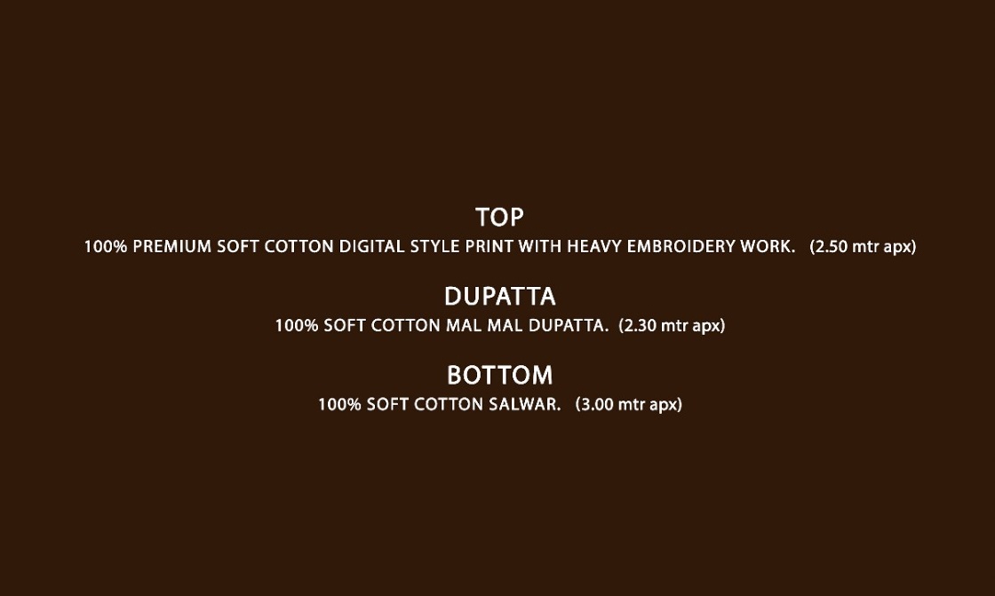 - Top: Premium Soft Cotton with heavy embroidery work & digital-style print
