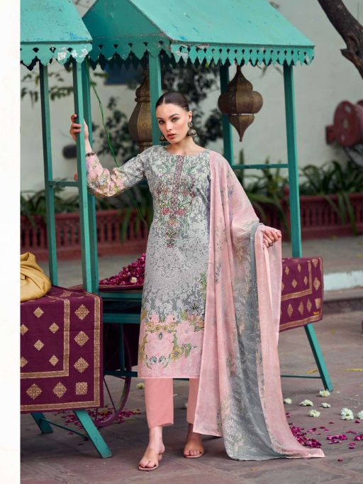 A perfect festive-ready collection made in breathable soft cotton with digital style prints and rich embroidery. Comes with a soft mal mal dupatta and matching cotton salwar.