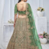 This elegant green lehenga, crafted from soft net fabric, is the perfect choice for a Mehendi function. The lehenga features an intricate paisley pattern and royal peacock motifs, which are delicately embroidered to add timeless charm and grandeur. The semi-stitched lehenga comes with a waist belt, complementing the embroidery with a beautiful latkan. The Green Mehendi Bridal Lehenga is paired with a matching sheer net dupatta, completing the traditional look with style. Explore more stunning designs in the Vardan Ethnic Lehenga Catalog and check out videos on our YouTube Channel.