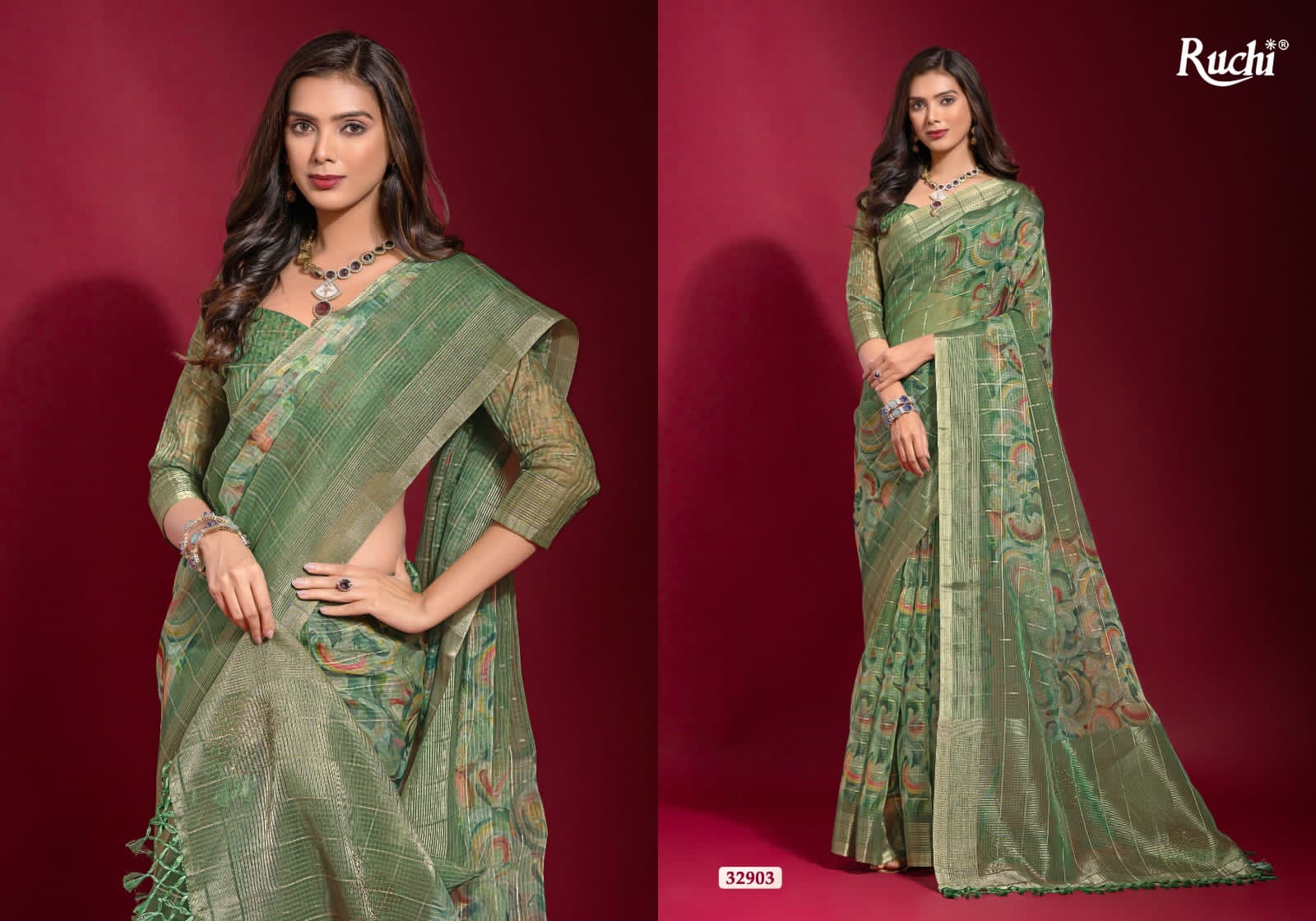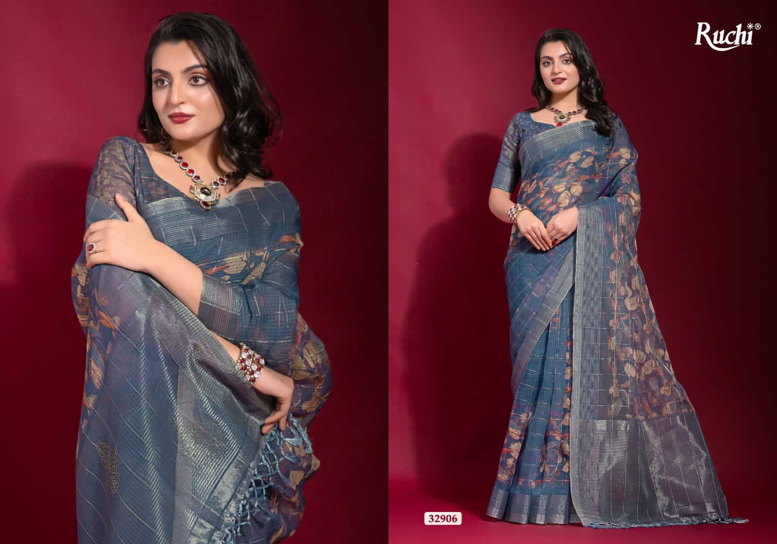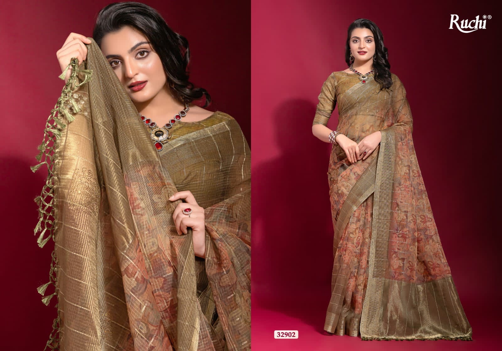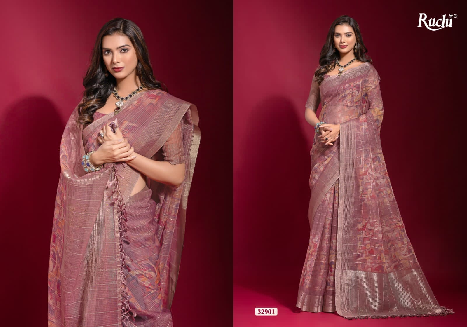 Ruchi Krisha Linen Silk Digital Print Saree Collection.