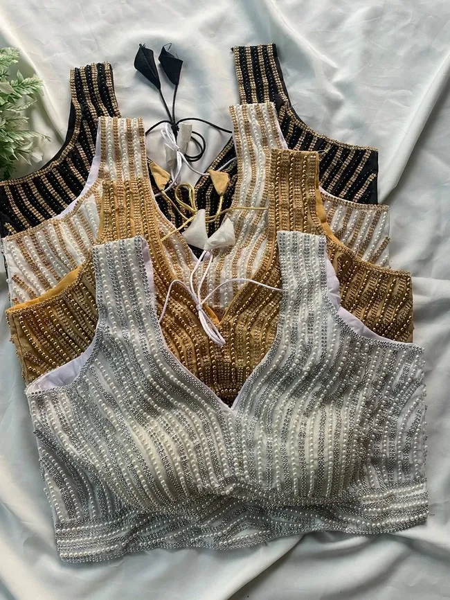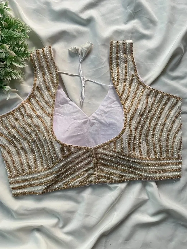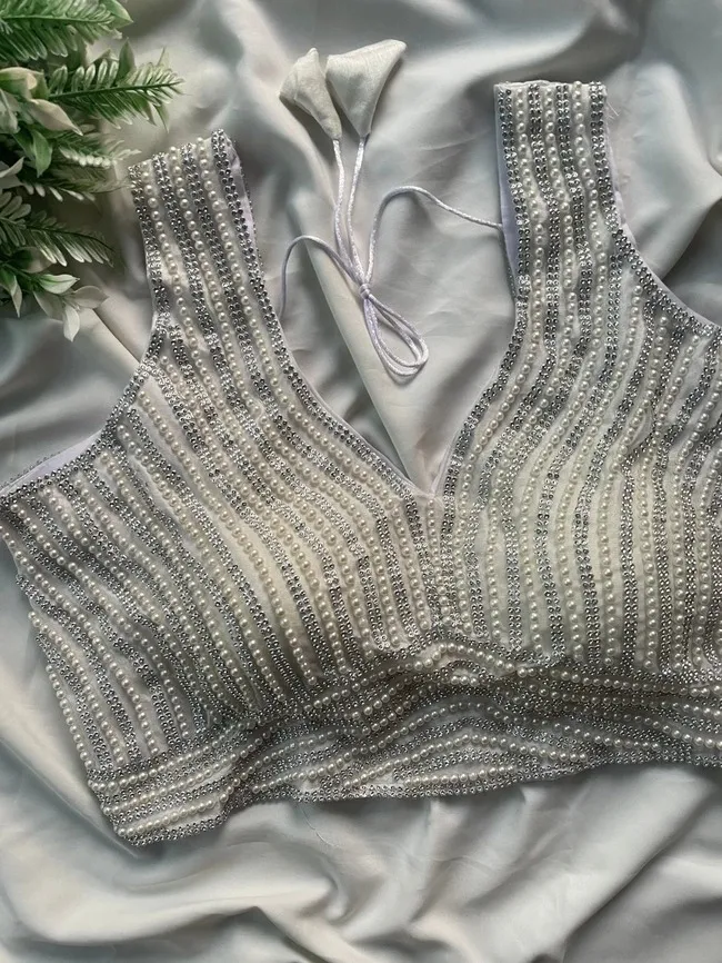 Ruh Pearl Moti Spaghetti Party Wear Stylist Blouse