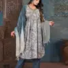This suit set includes a top made from Heavy Modal Silk. Modal Silk is known for its softness, sheen, and drapability, making it a comfortable choice for ethnic wear. The top features a beautiful print and Manual Aaliya Cut Embroidery Work, adding an artistic touch to your ensemble.