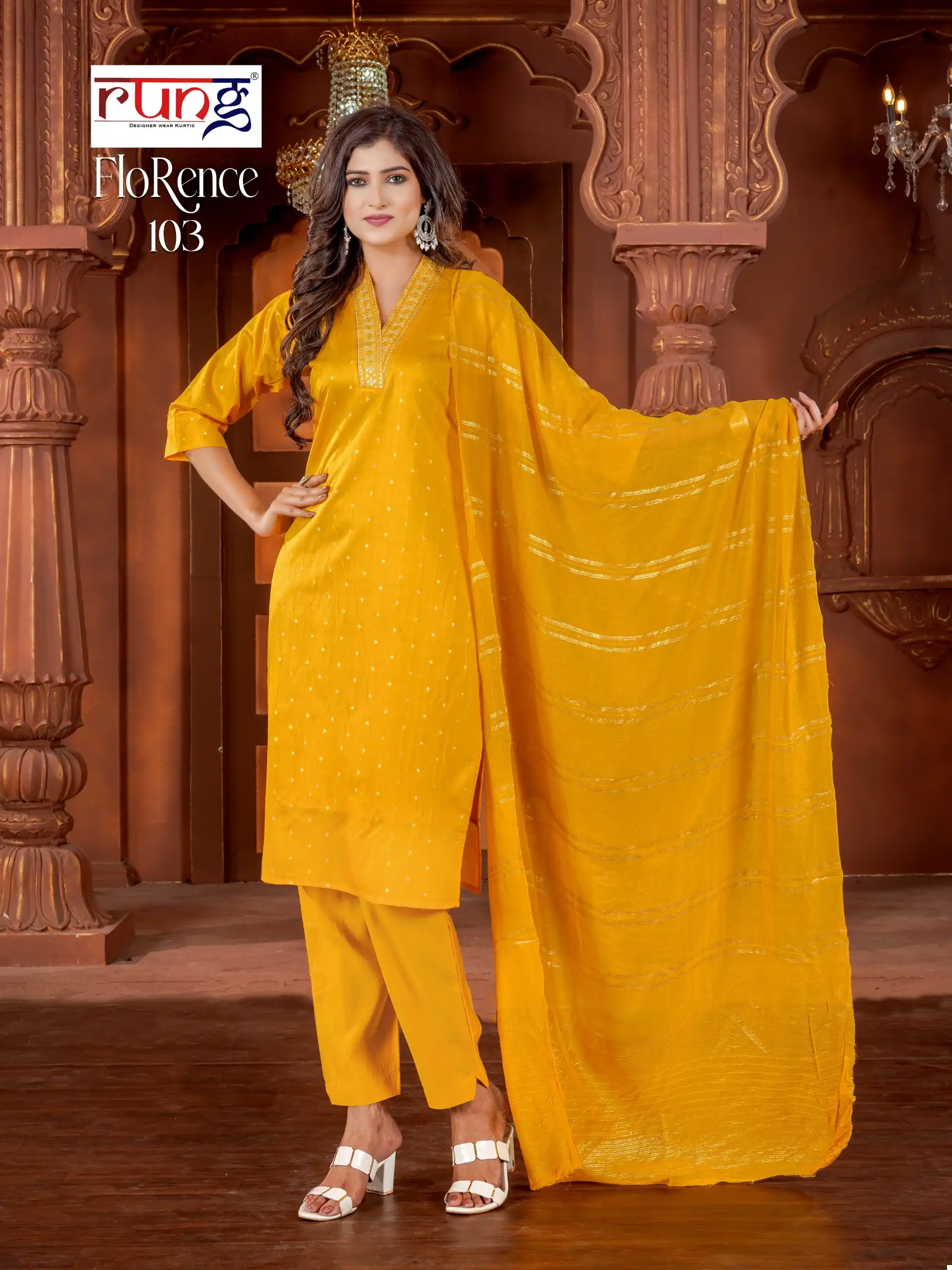 Rung Florence Heavy Silk Wholesale Readymade Salwar Suit Catalog