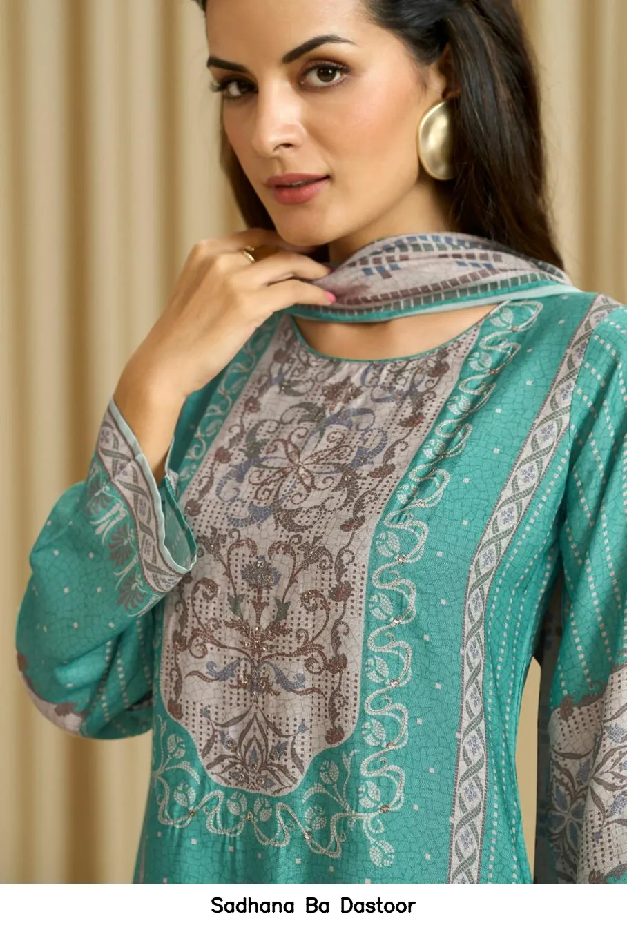 | Top | Pure Muslin Silk Digital Print with Heavy Khatli Work |