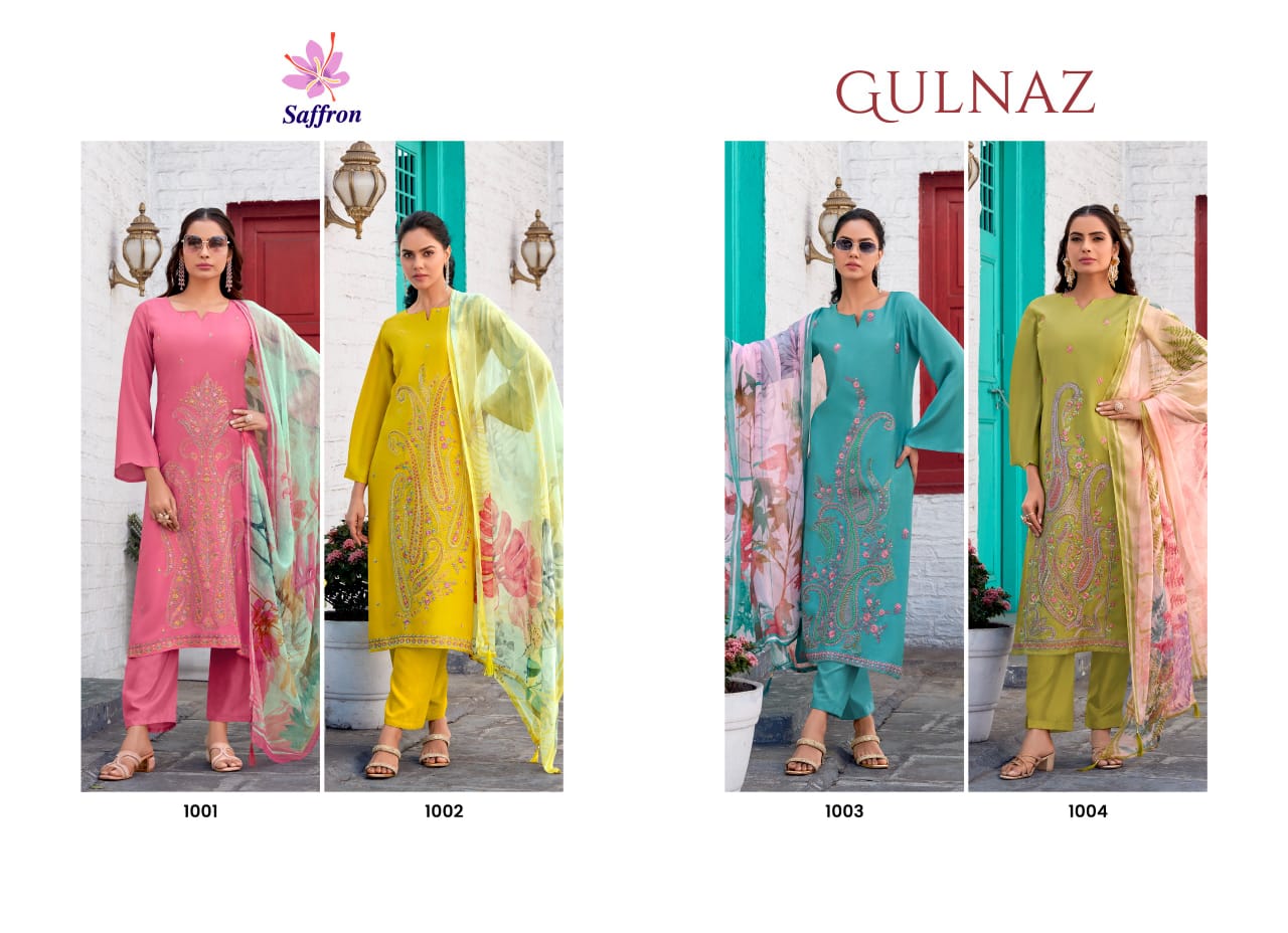 A blend of elegance and sophistication, Gulnaz by Saffron is a must-have for ethnic fashion lovers. Designed with premium fabrics, intricate embroidery, and a striking color palette, this collection ensures a classy and timeless look.