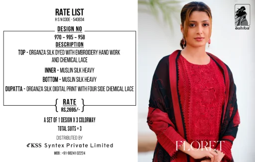 ✓Organza silk embroidery ✓Mulberry silk bottom & inner ✓₹2695 + GST ✓4 pcs set