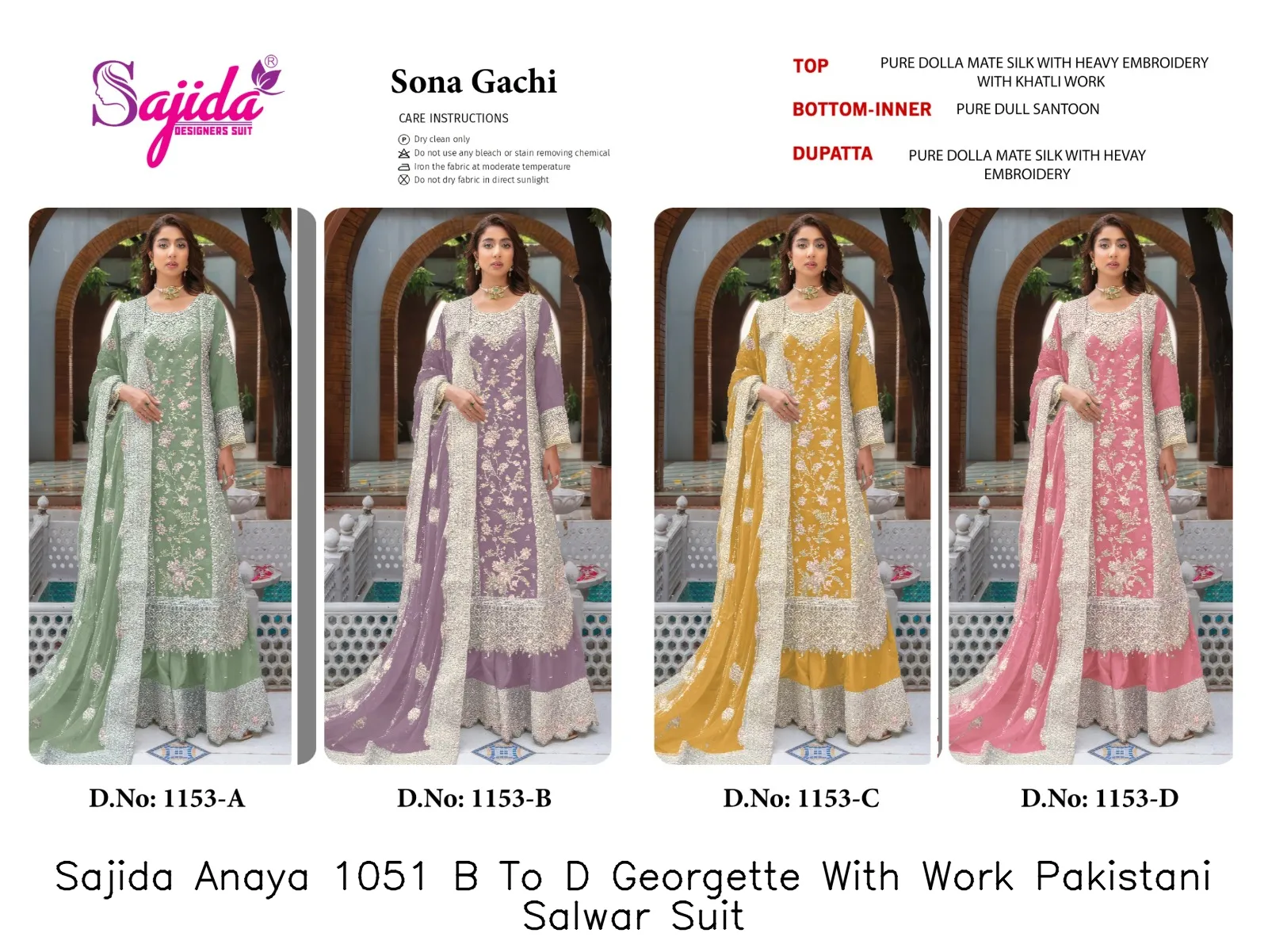 Sajida Anaya 1051 B To D Georgette With Work Pakistani Salwar Suit