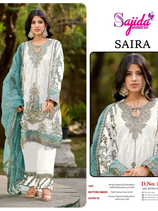 Sajida Saira Organza Embroidered Salwar Suit at Wholesale Catalog.
