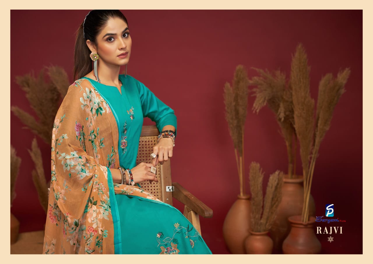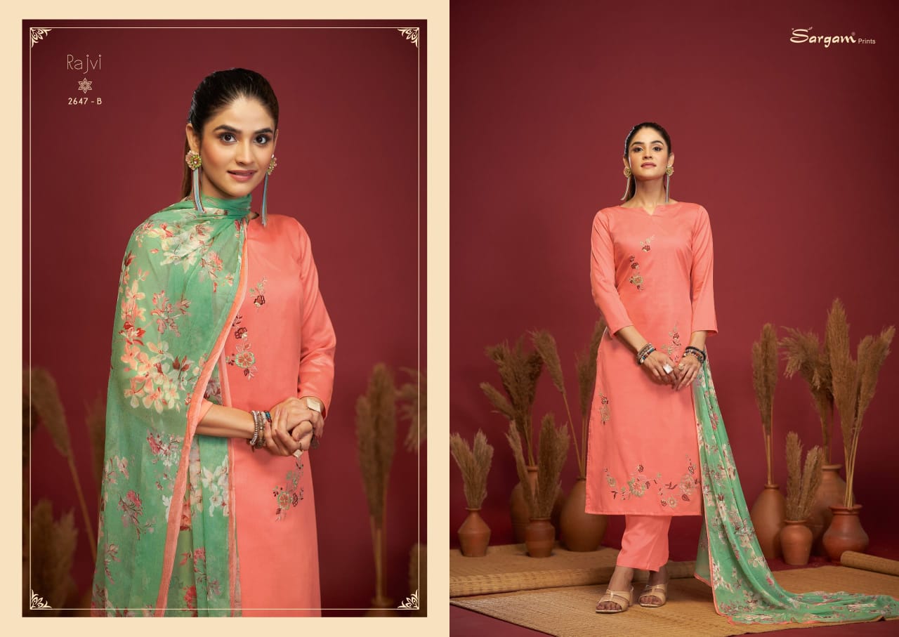 Sangam0 Rajvi Pure Jam Cotton Thread Digital Work Salwar Suit Collection.