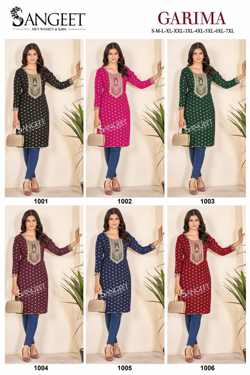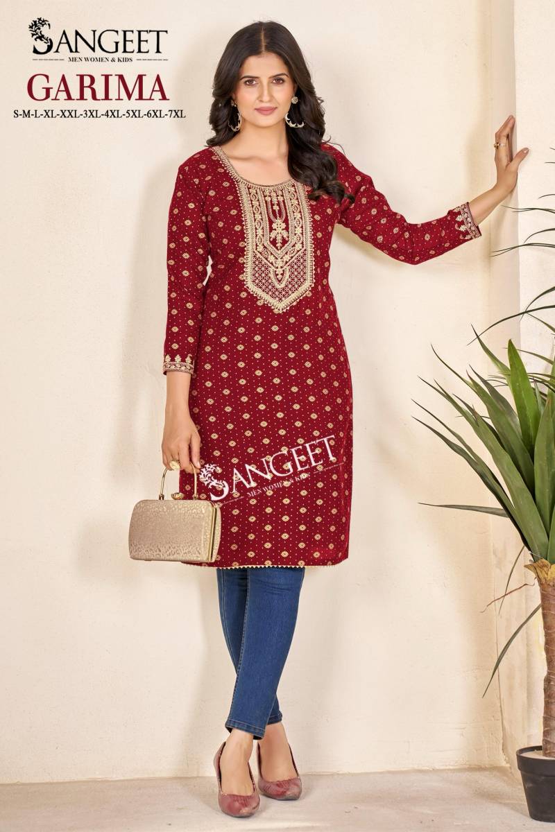 Sangeet Garima Rayon Multi Gold Embroidered Kurti Collection.
