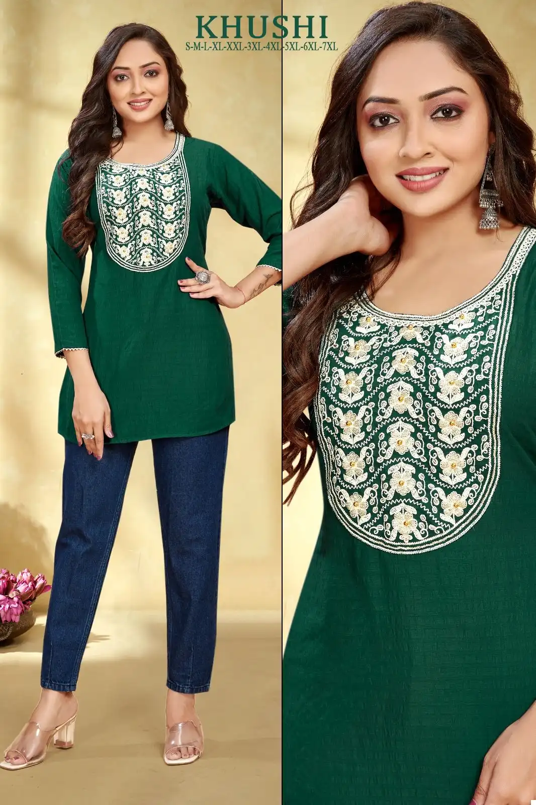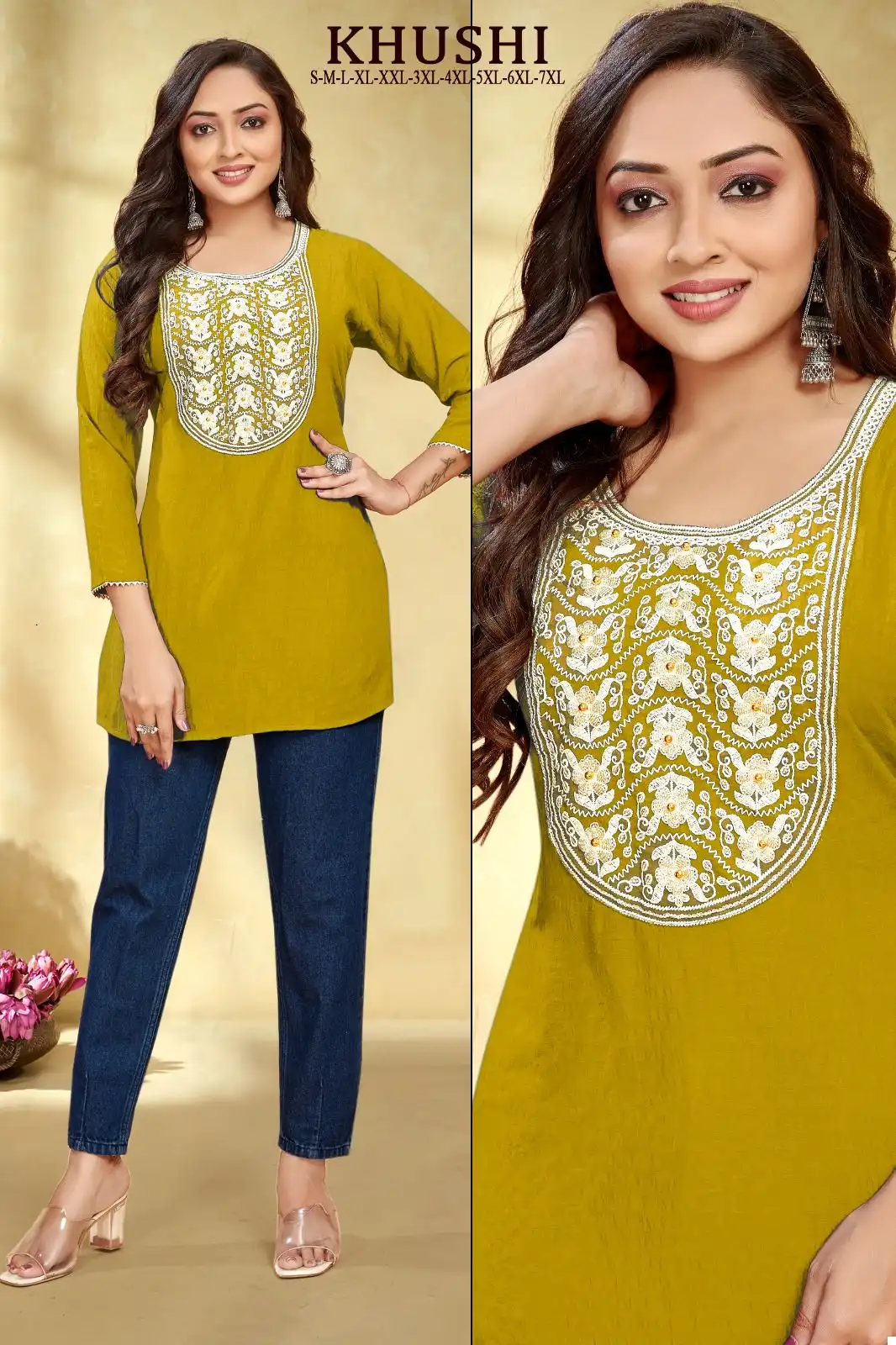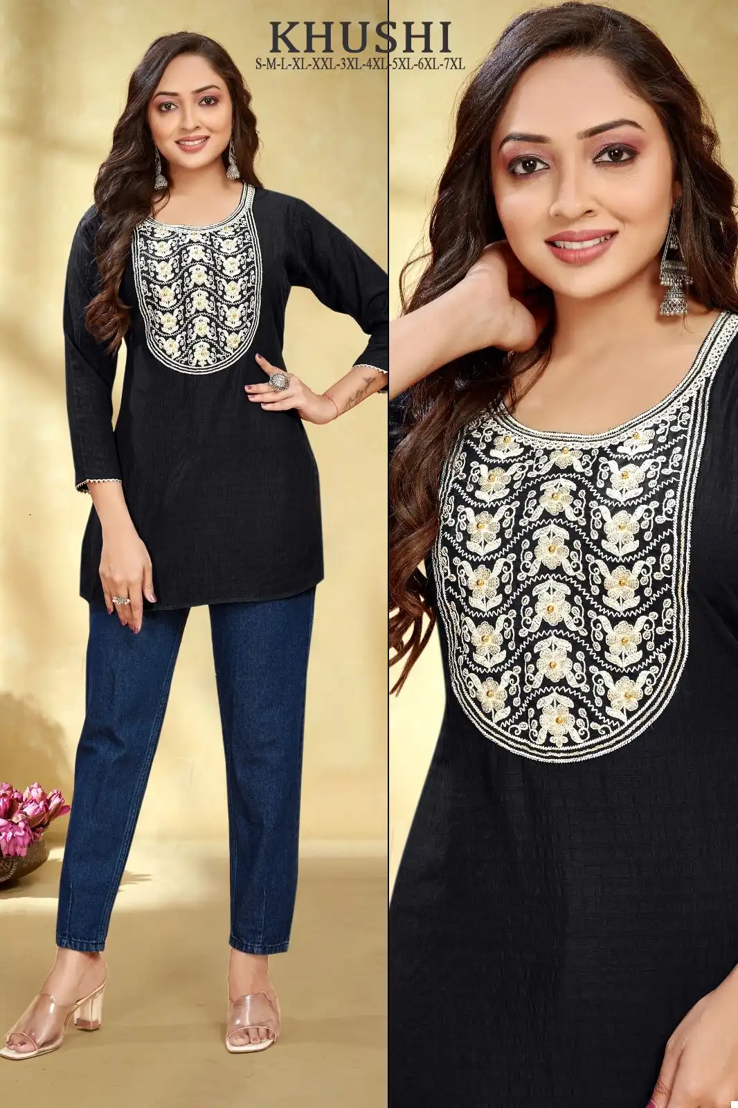 - The tops are crafted from Viscose Fancy Rayon fabric, known for its softness and drape.