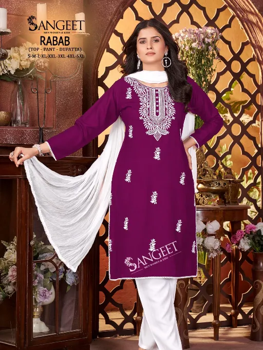 Sangeet Rabab Vol 1 Wholesale Viscose Rayon Kurti With Bottom Dupatta.