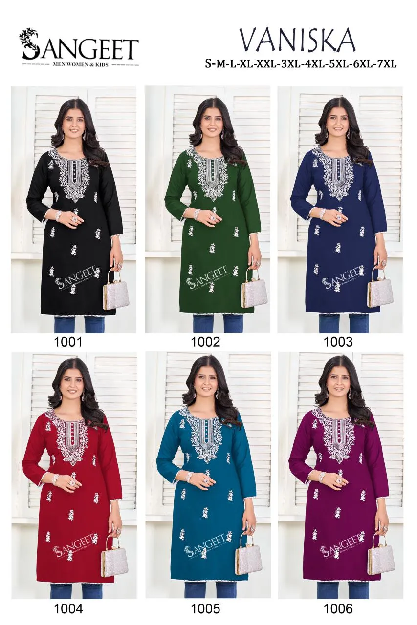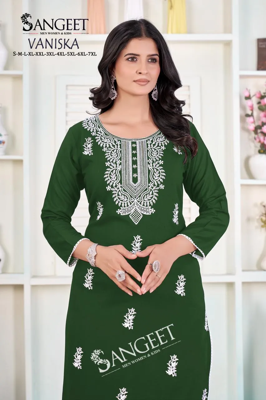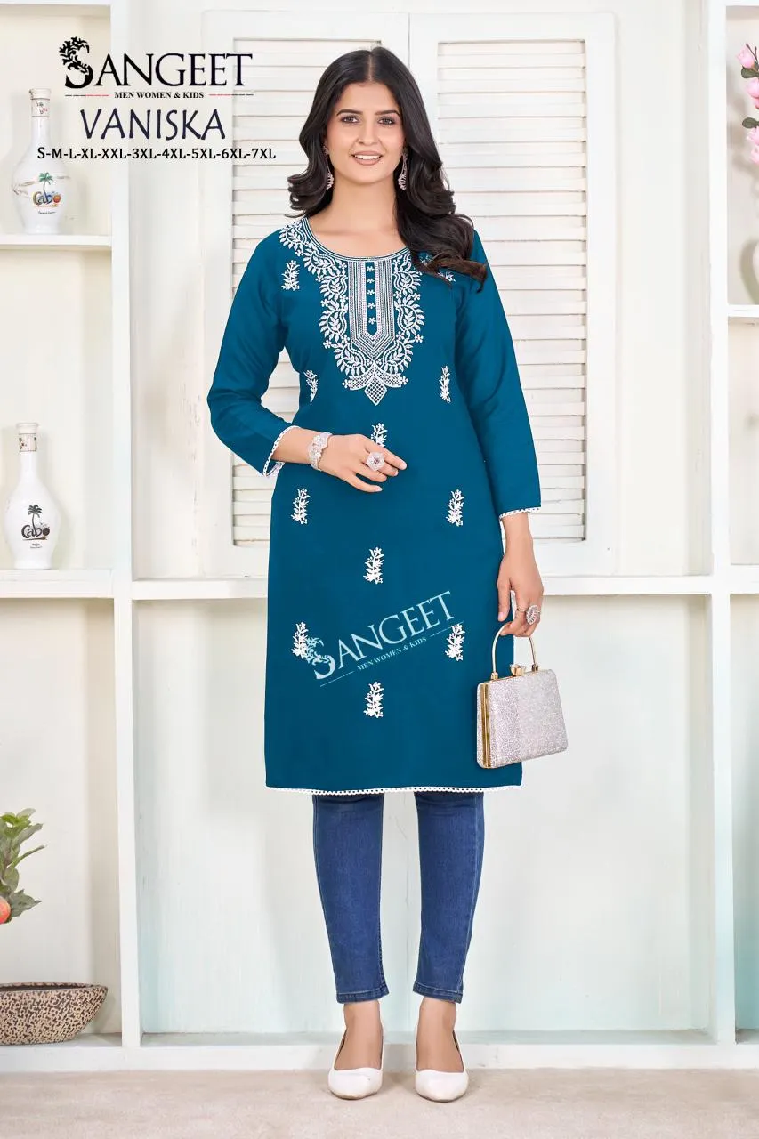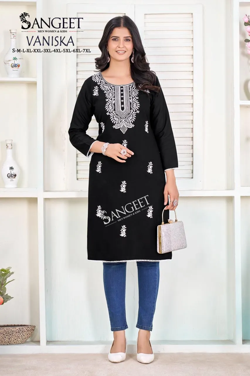 Sangeet Vaniska Rayon White Embroidery Casual Wear Kurti
