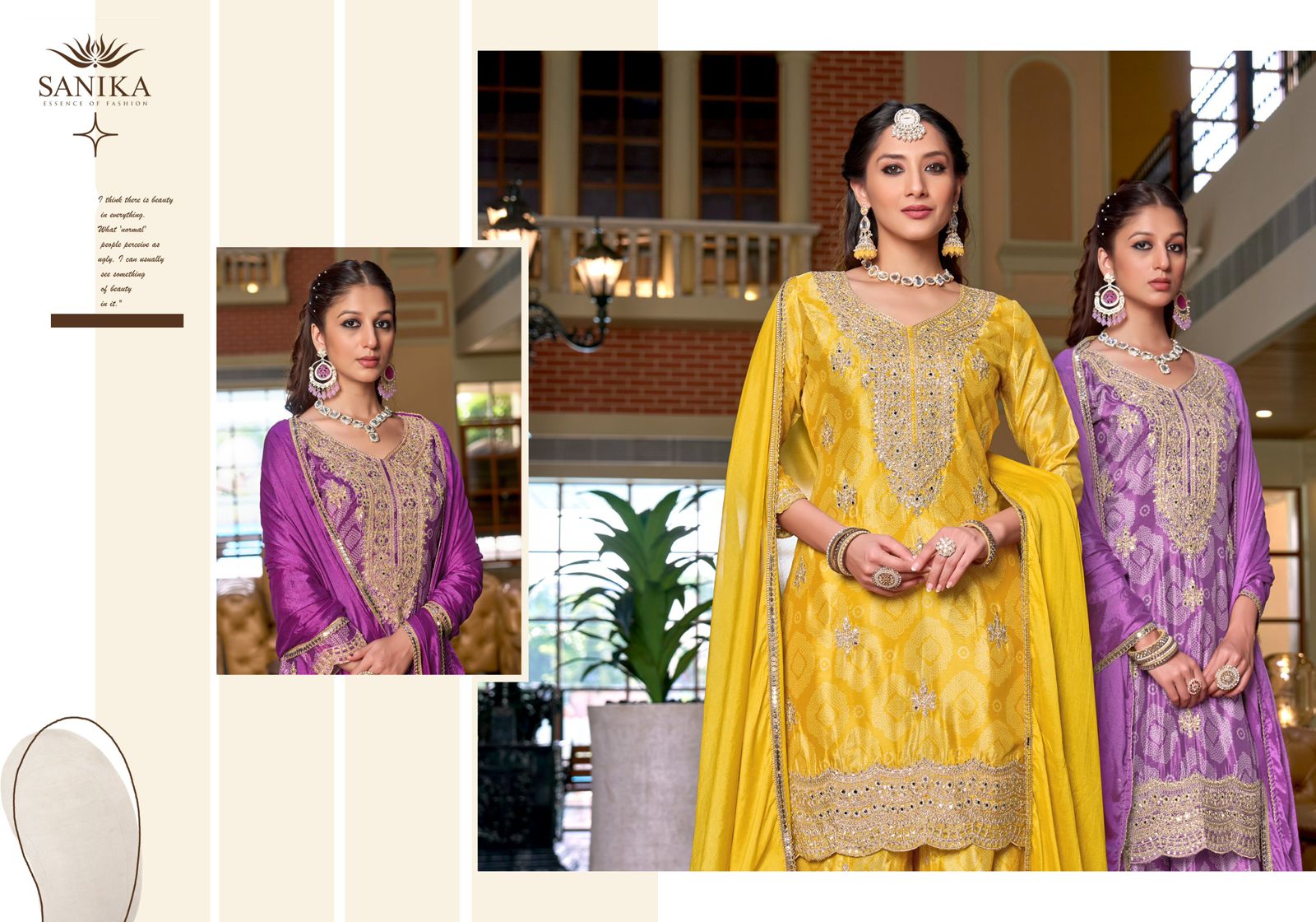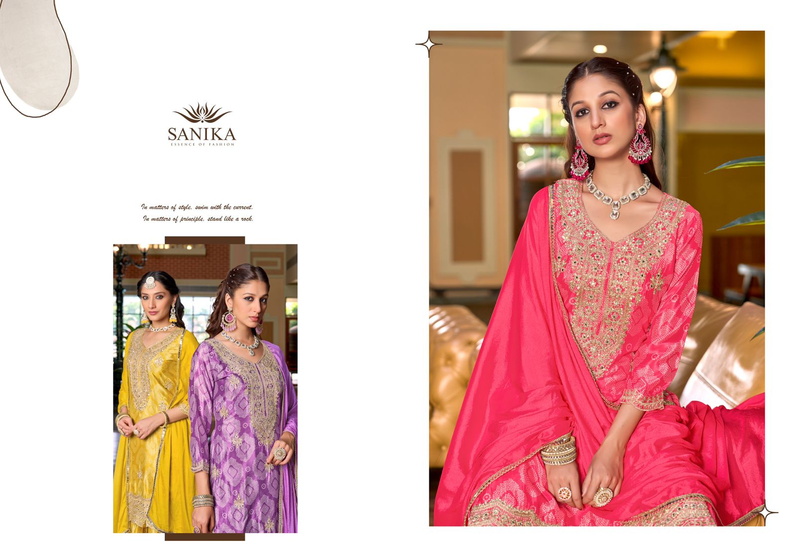 Sanika Fashion Rang Razia Wholesale Readymade Chinon Silk Sharara Suit.