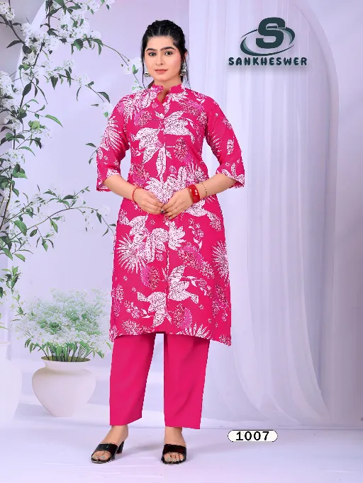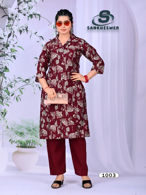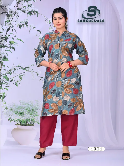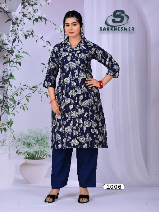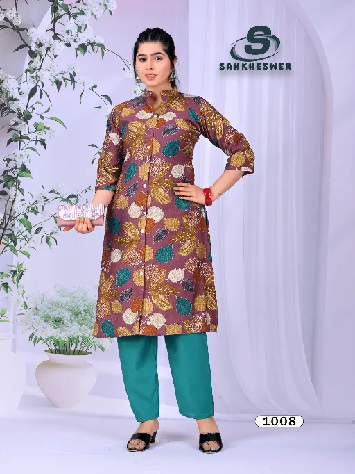 Shop Sankheswer Flower Vally Vol 1 vertican foil print cord sets in sizes M to 3XL. Premium style & comfort at wholesale price.