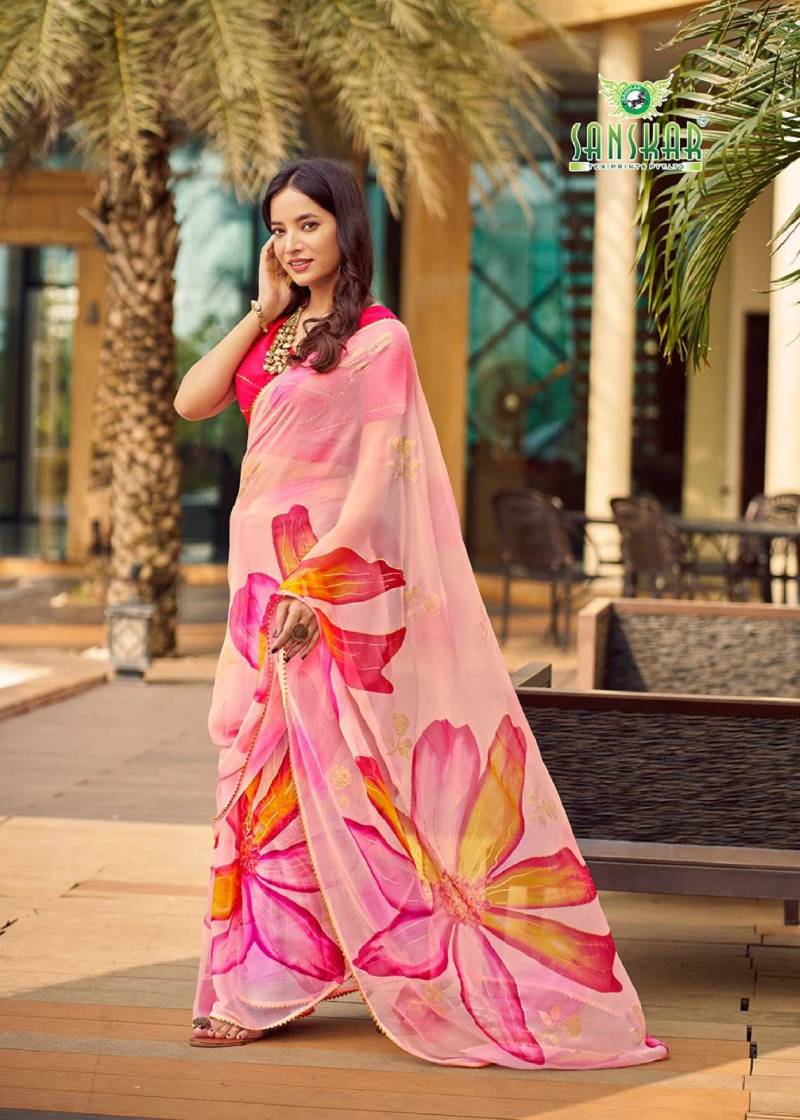 Sanskar Festival Saree Georgette Foil Printed Wholesale Saree Catalog