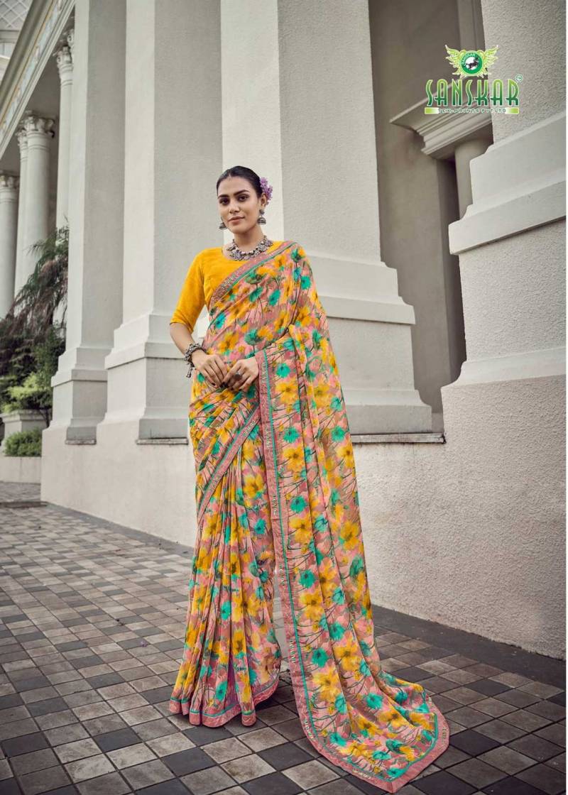 Sanskar Malaika Bember Georgette Embroidered Saree Collection.