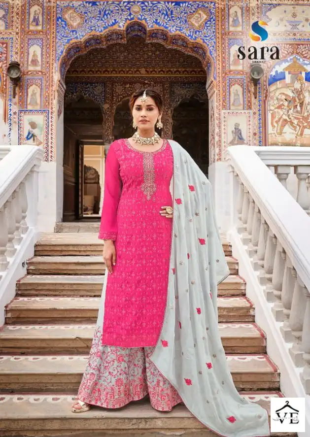Sara Trendz Anokhi Chinon Wholesale Designer Salwar Suit Catalog 4 Pcs. We deal in Kurtis, Sarees, Dresses Materials, Leggings, and Designer Salwar Kameez.