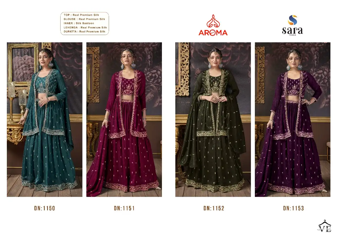 Sara Trendz Bansuri Real Premium Silk Wholesale Readymade Lehenga Catalog of 4 Pcs. We deal in Kurtis, Sarees, Dresses Materials, Leggings, and Designer Salwar Kameez.