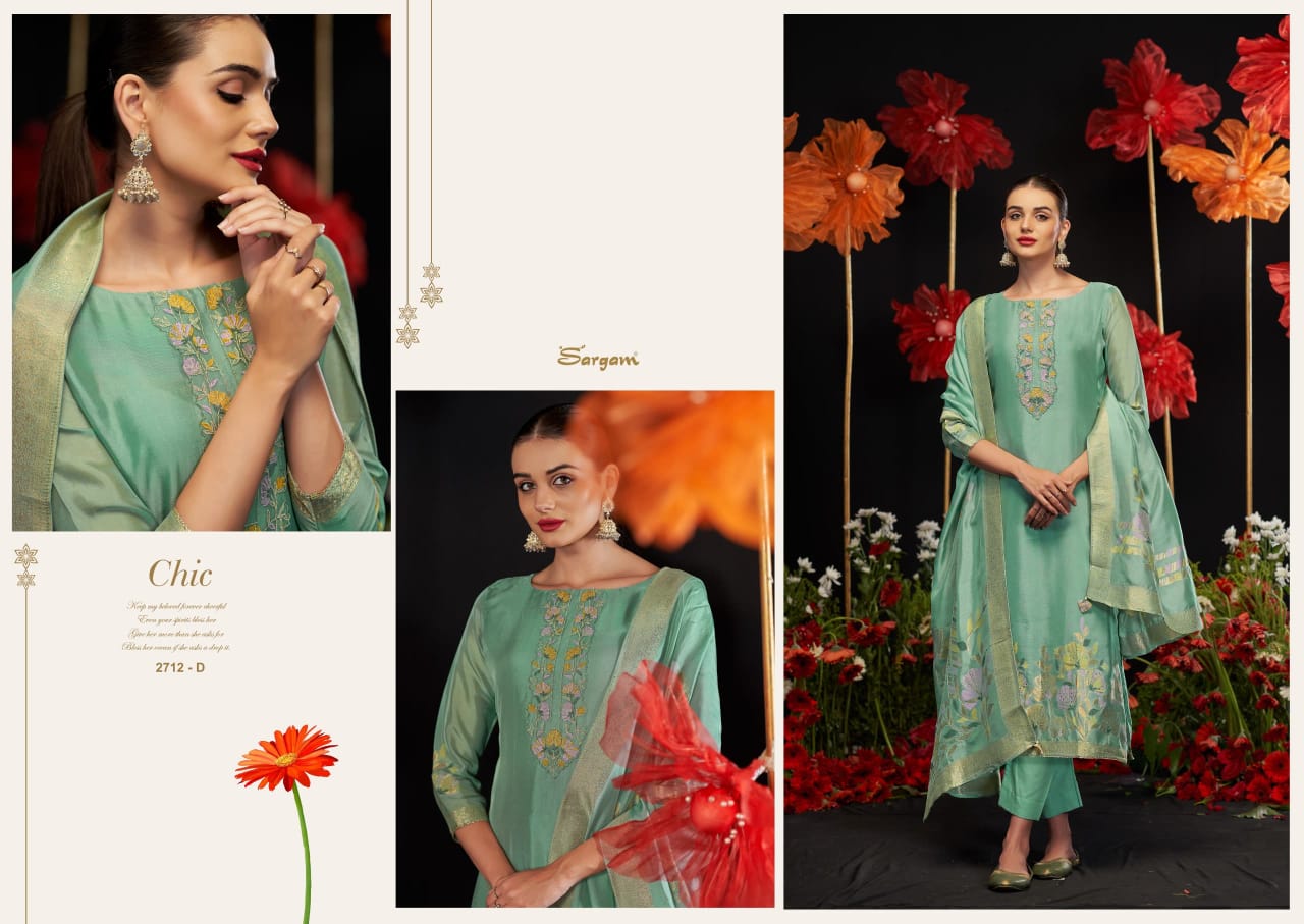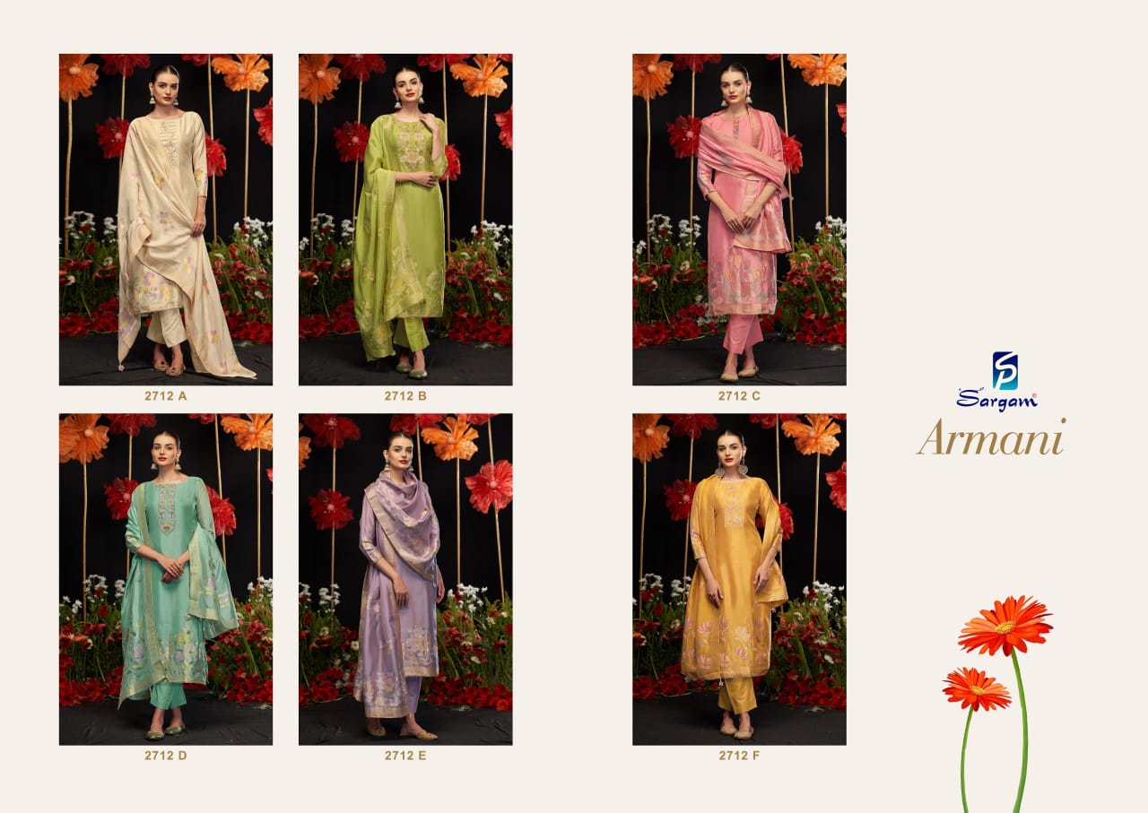 Sargam Prints Armani Wholesale Viscose Silk Salwar Suit Catalog.