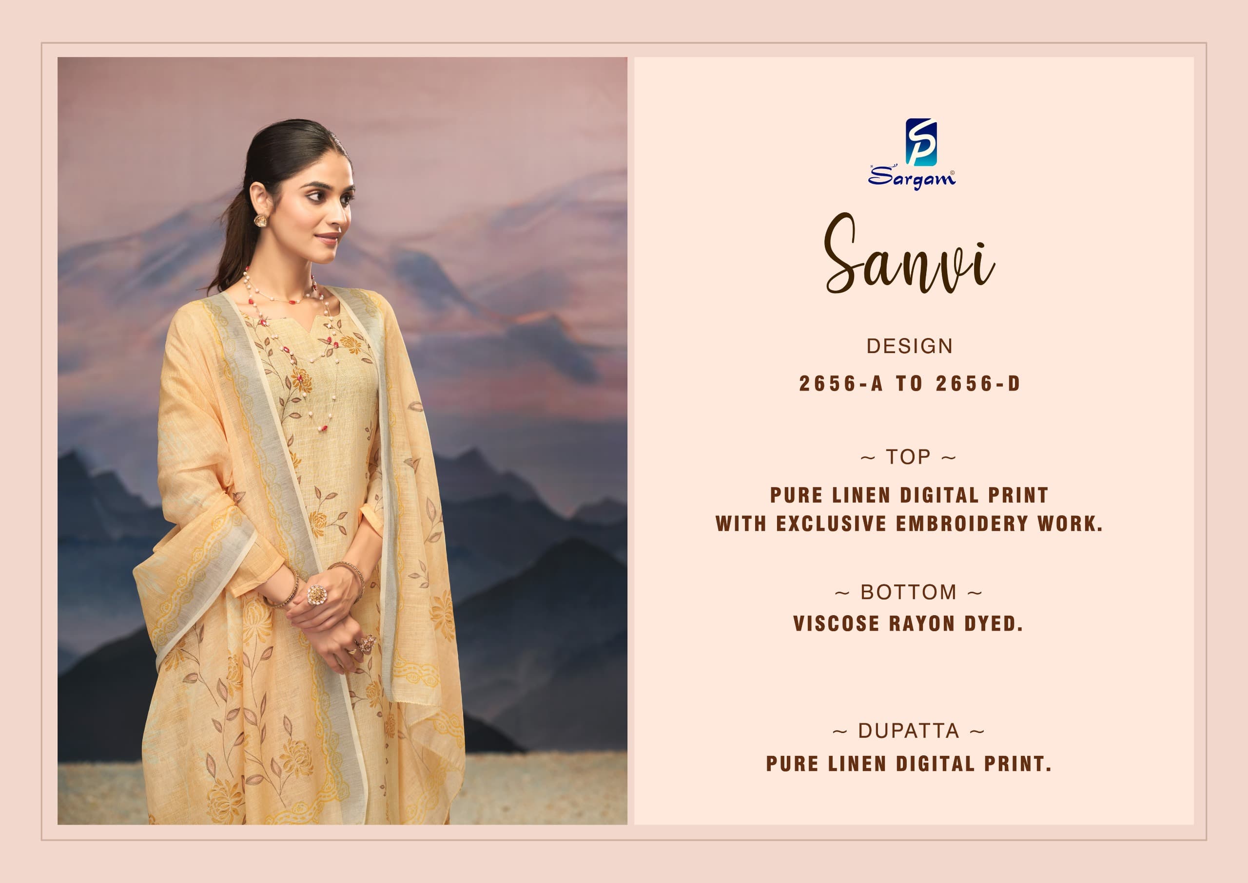 Sargam Sanvi Pure Linen Digital Print Salwar Suit Embroidery Catalog