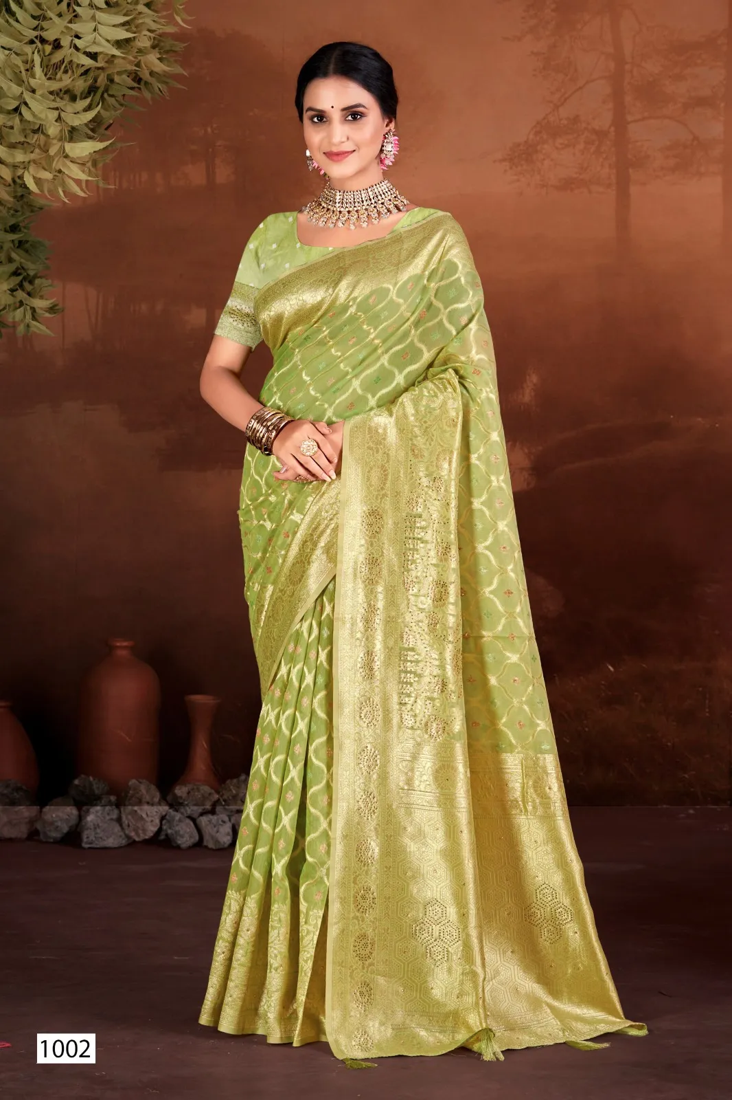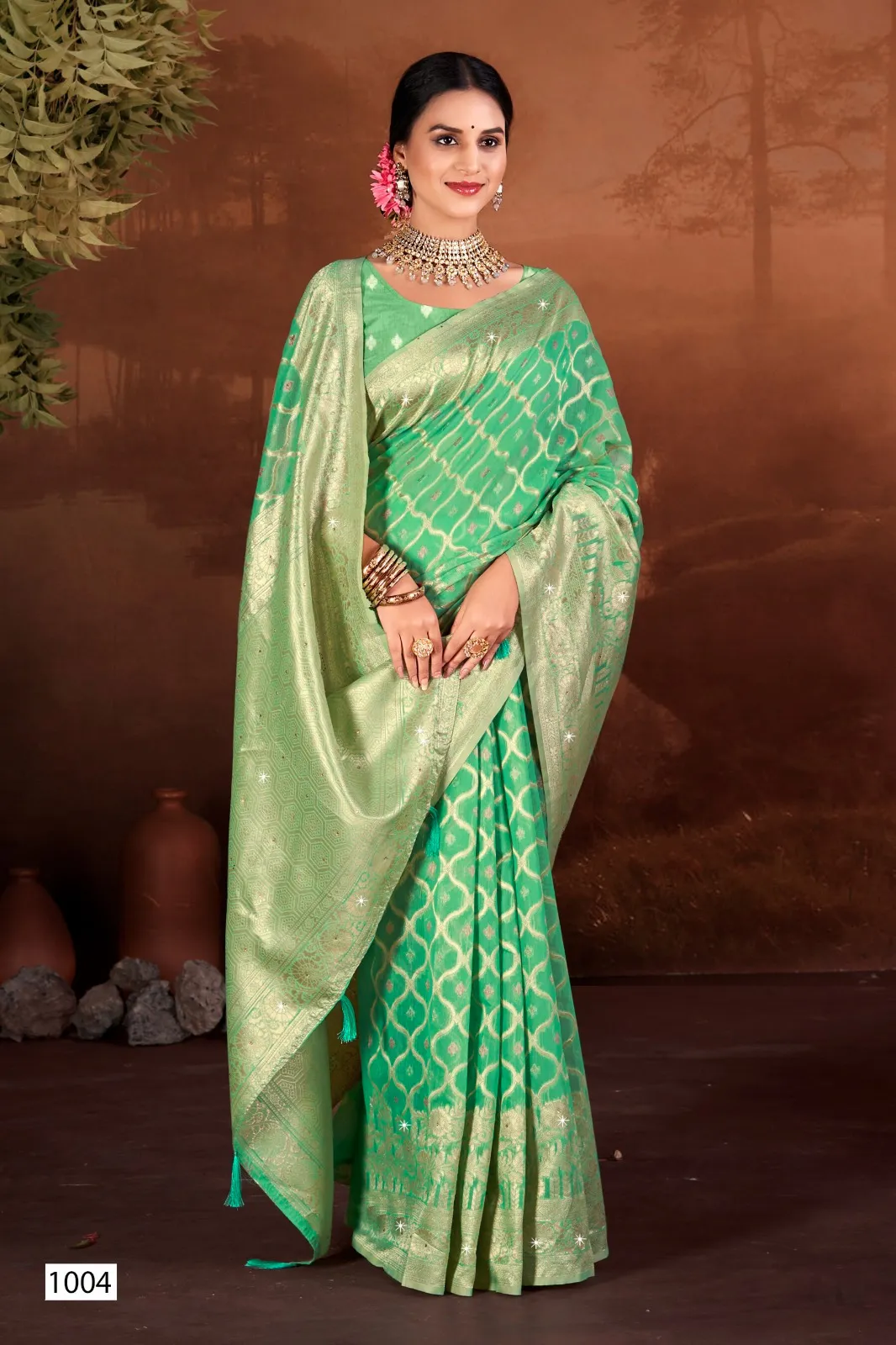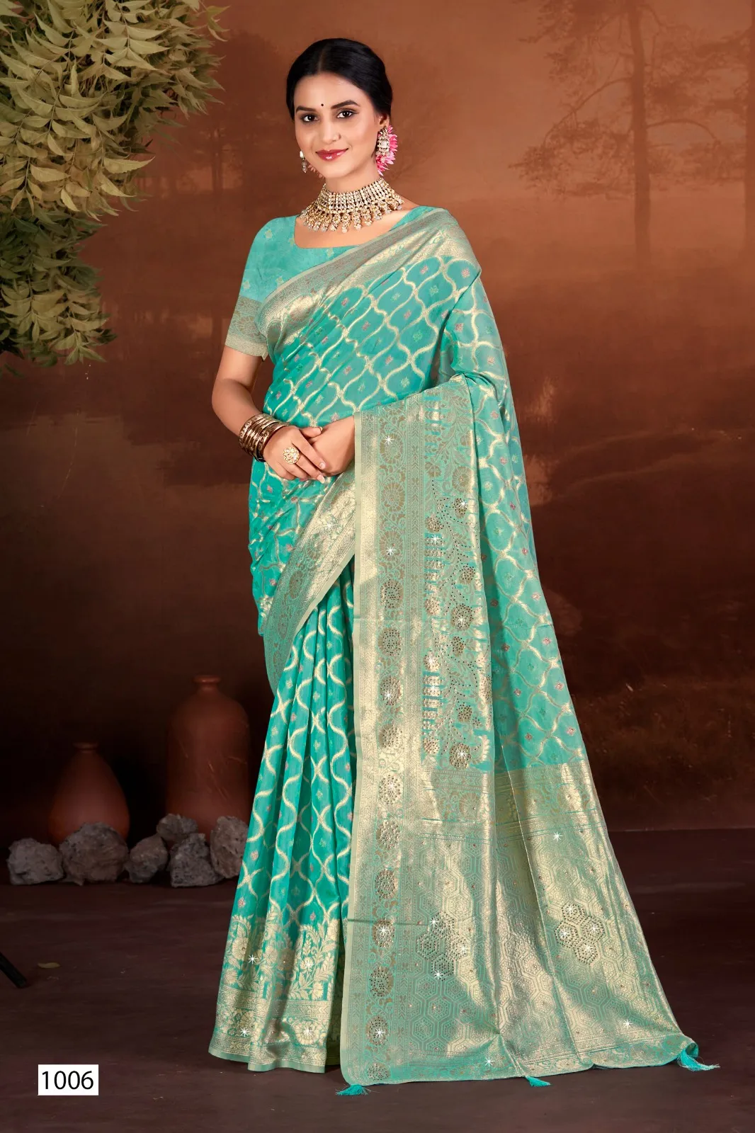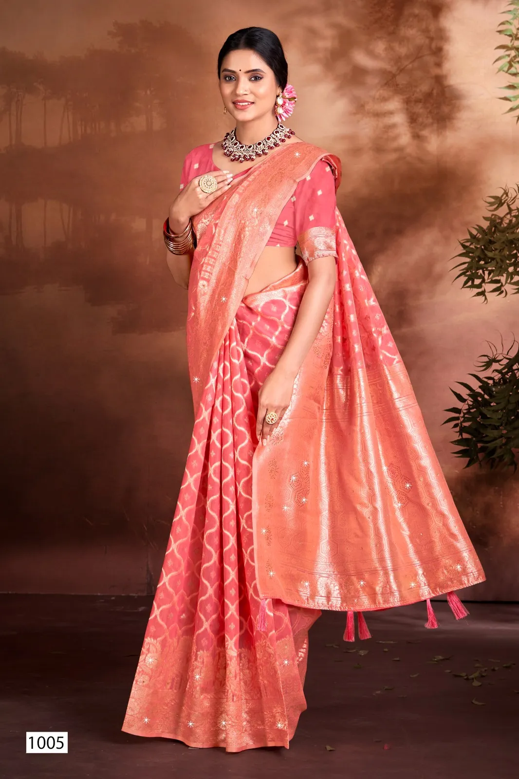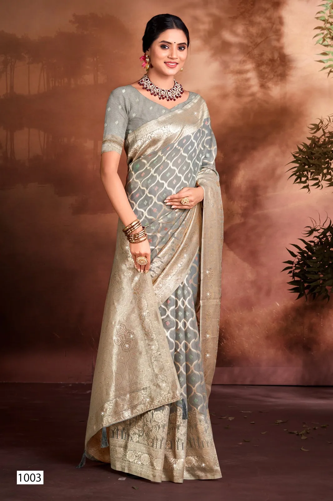 | Saree | Soft Linen Cotton Mina with heavy Swarovski Work |