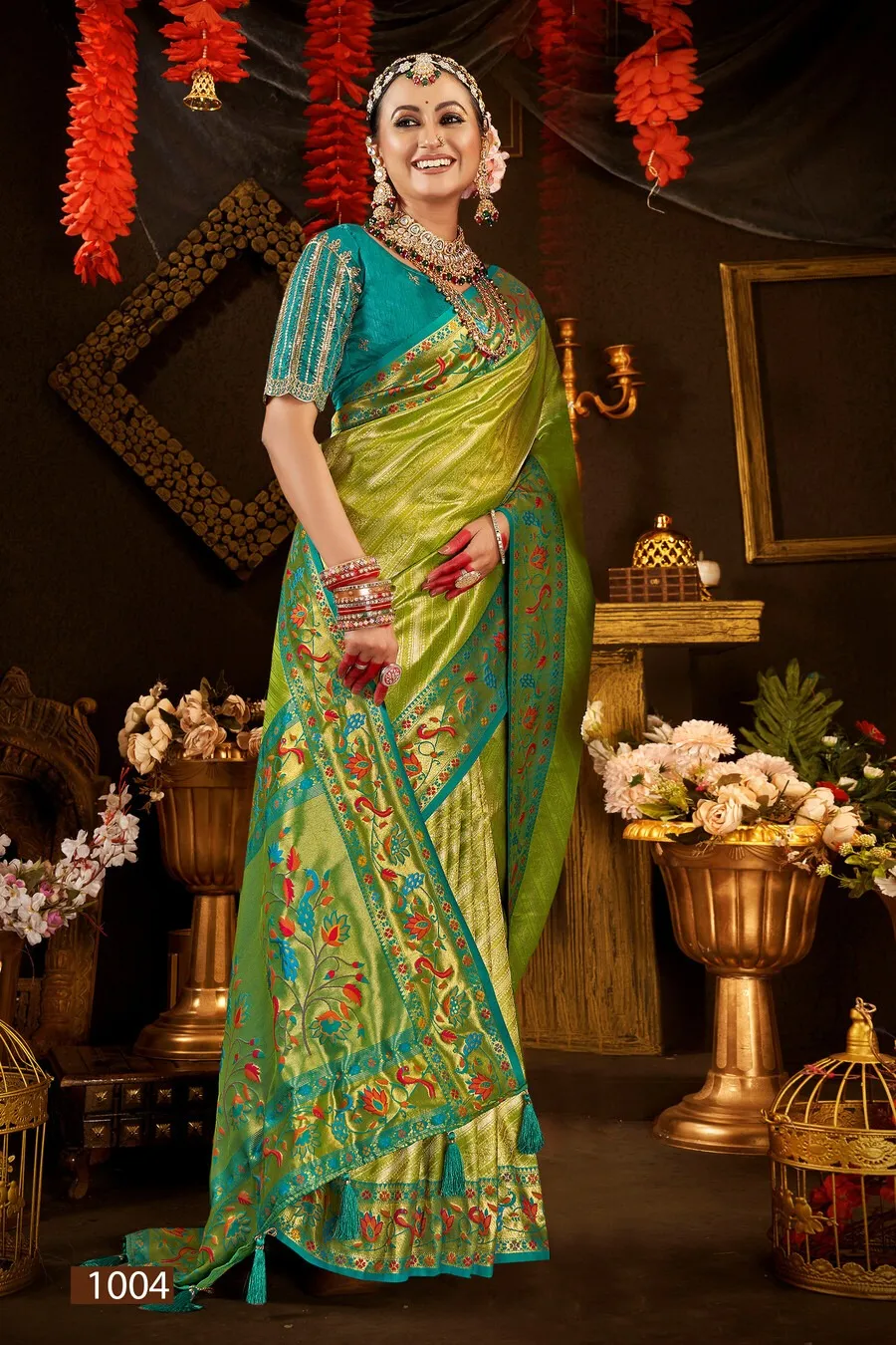 Fabric Soft Tissue Paithani Silk Saree with Worked Blouse
