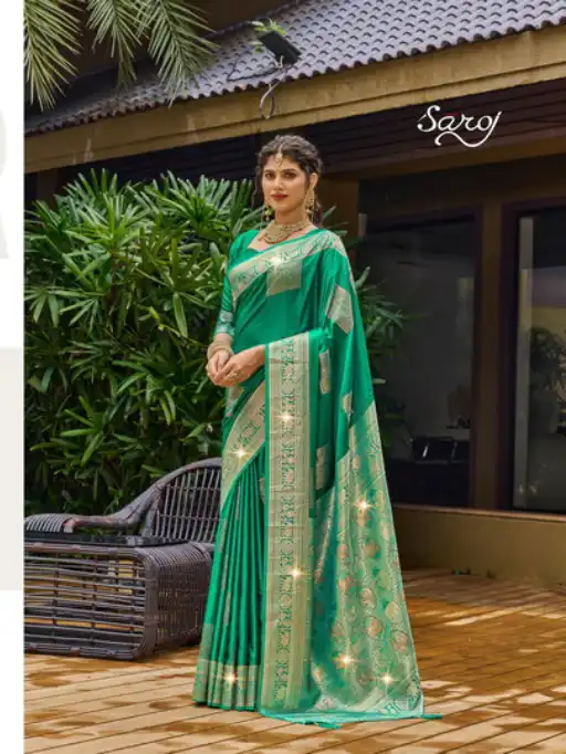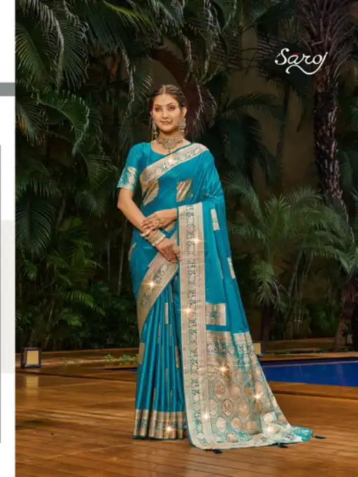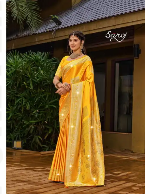 ✨ Add charm to your ethnic boutique with Saroj’s Surekha Silk Vol 1 — a luxurious satin silk saree line adorned with dazzling Saroski work for timeless elegance.
