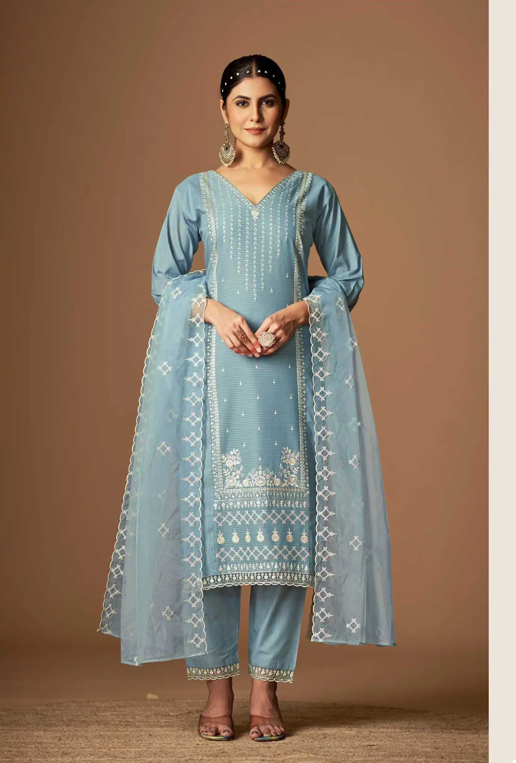 - Dupatta: Pure Organza with Fancy Embroidery Work