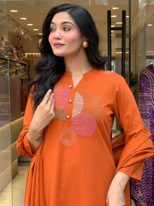 Neck: Mandarin Collar with Embroidered Work & Buttons