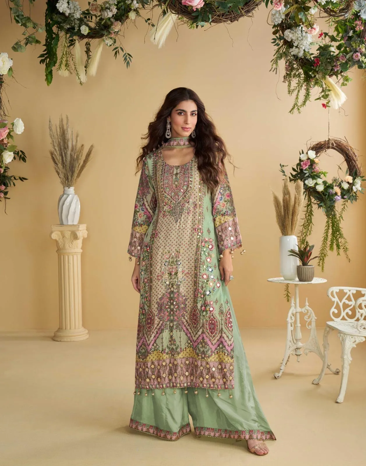 Sayuri Anika Natural Crepe Silk Aari Work Designer Salwar Suit