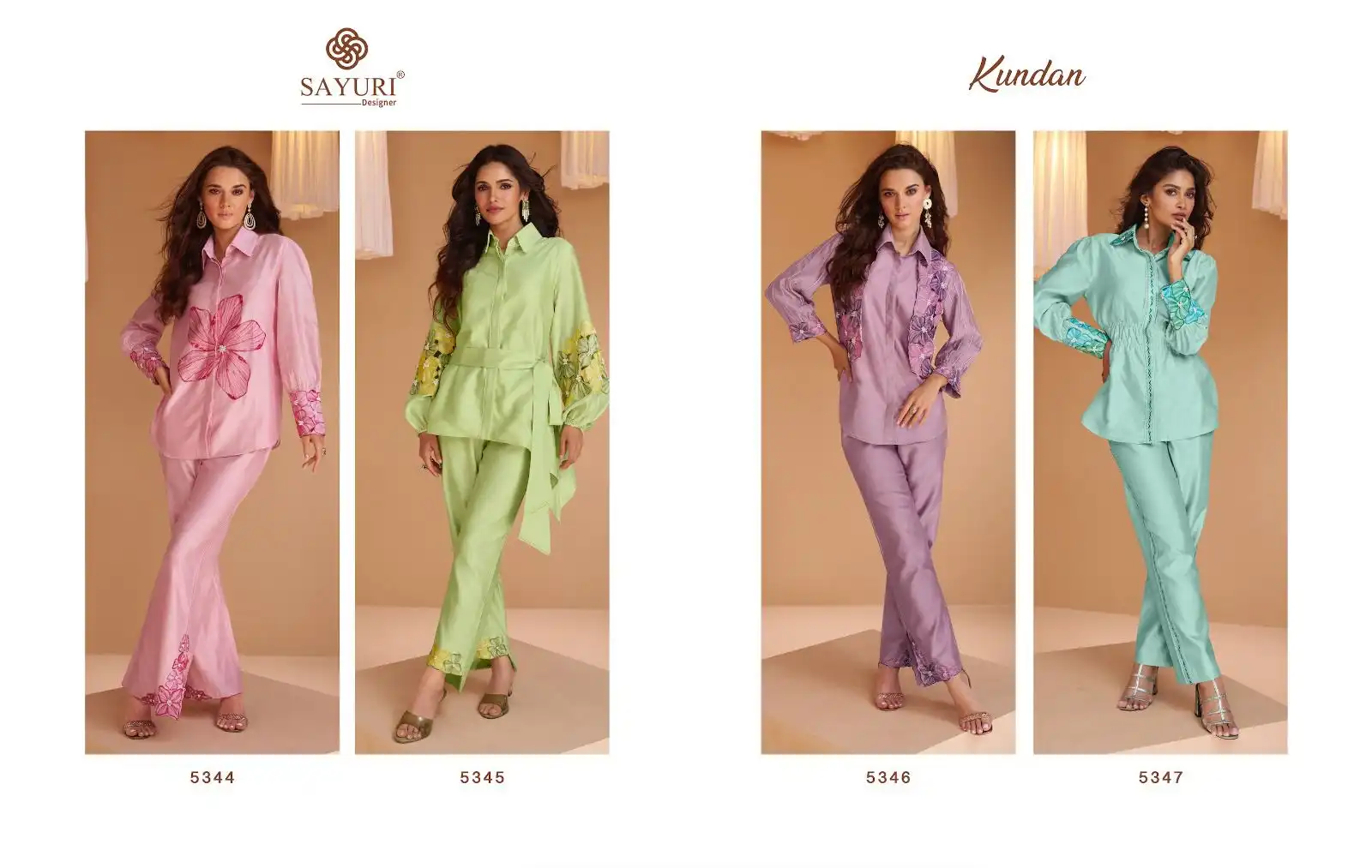 Sayuri Designer Kundan Silk Wholesale Designer Party Wear Cord Sets Catalog 4 Pcs. We deal in Kurtis, Sarees, Dresses Materials, Leggings, and Designer Salwar Kameez.