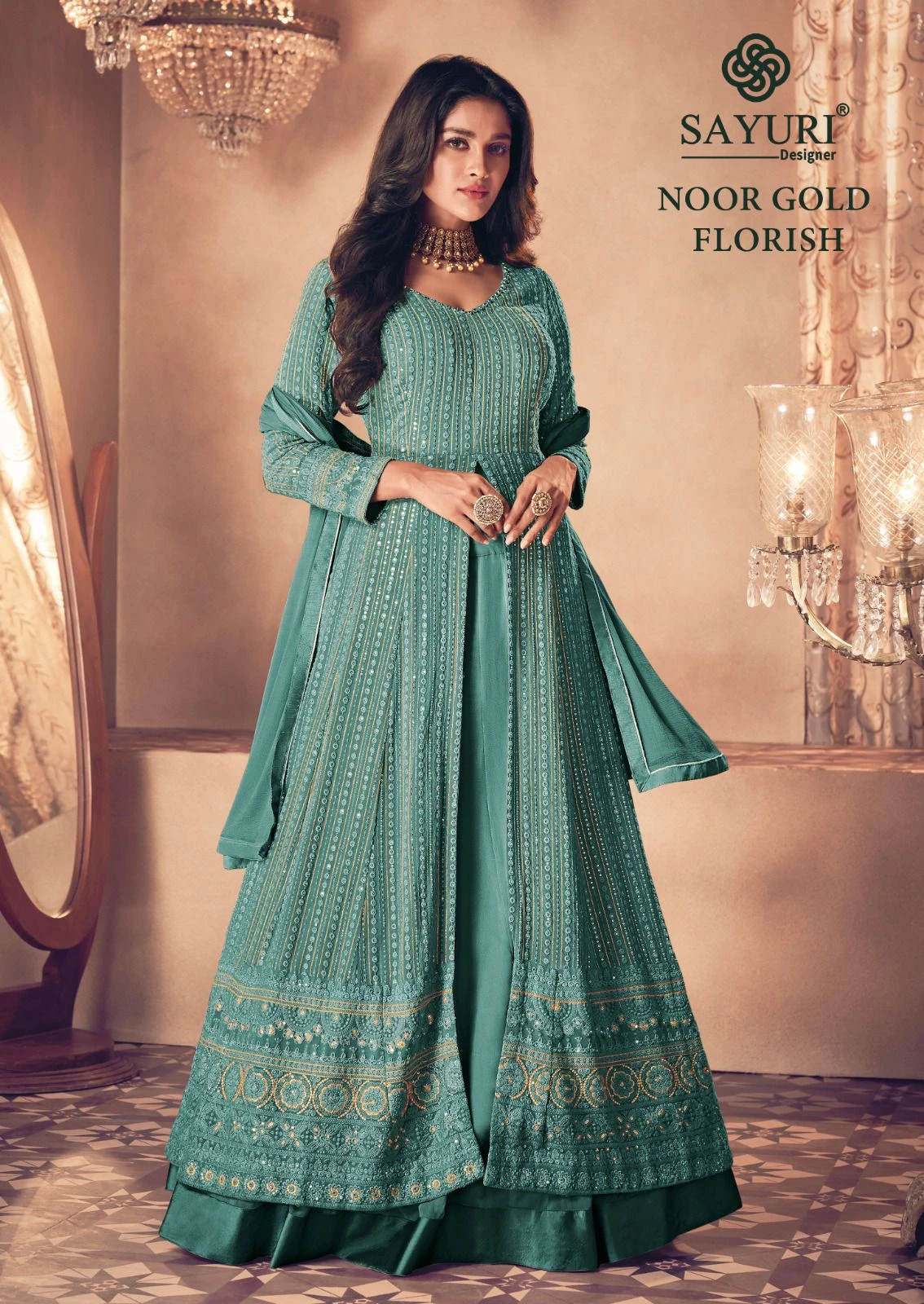 Sayuri Designer Noor Gold Florish Real Georgette Wholesale Designer Readymade Salwar Suit Catalog