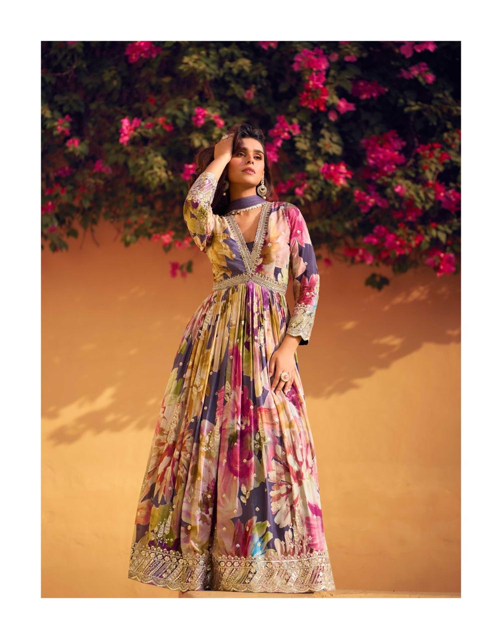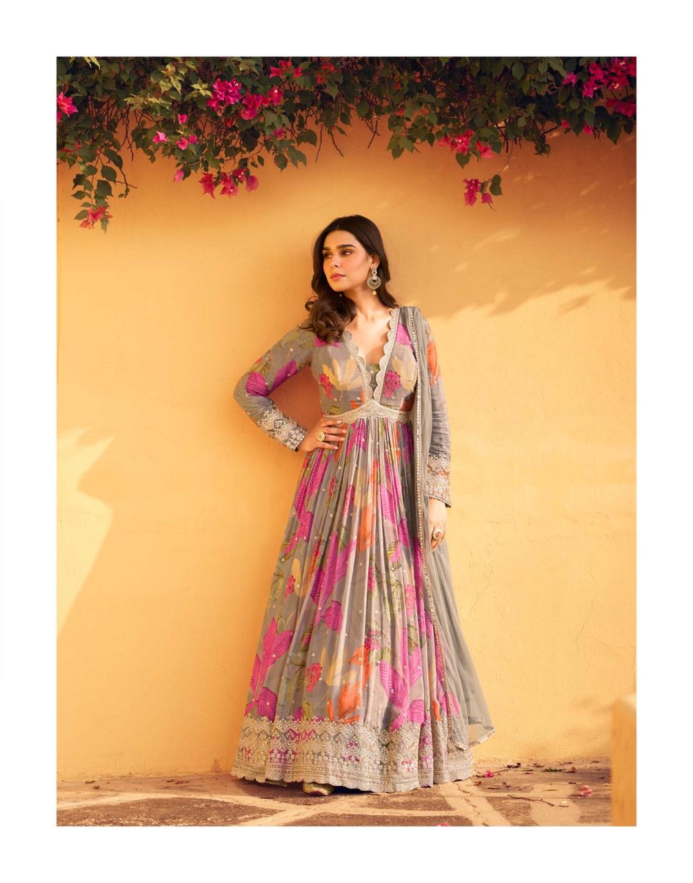 Premium Real Chinon Silk (Heavy Look Front And Back Embroidered With Dupatta) |