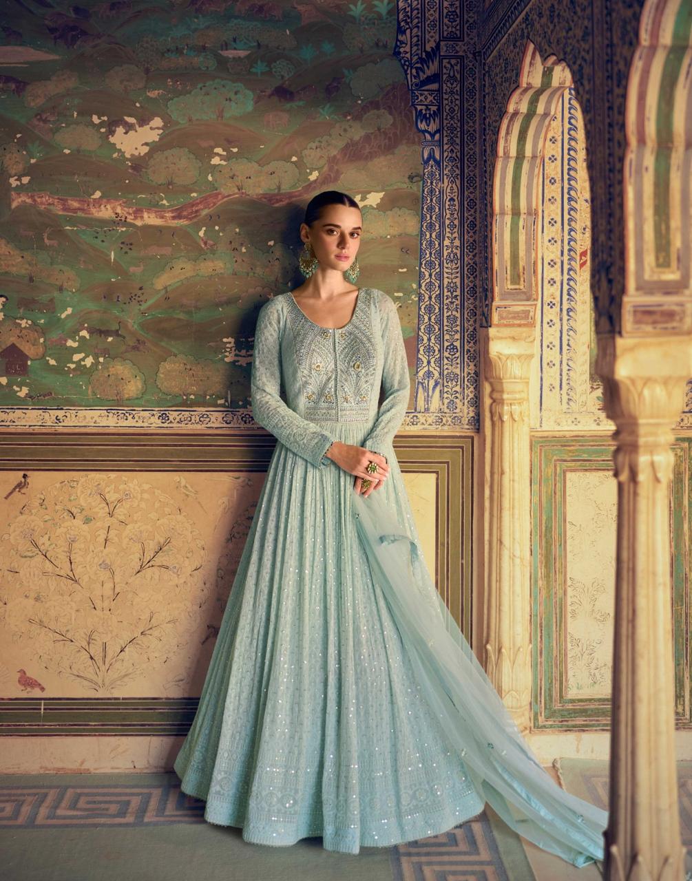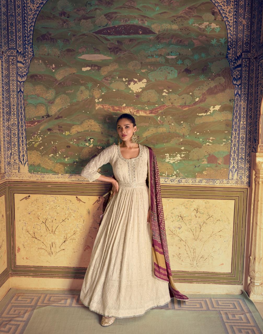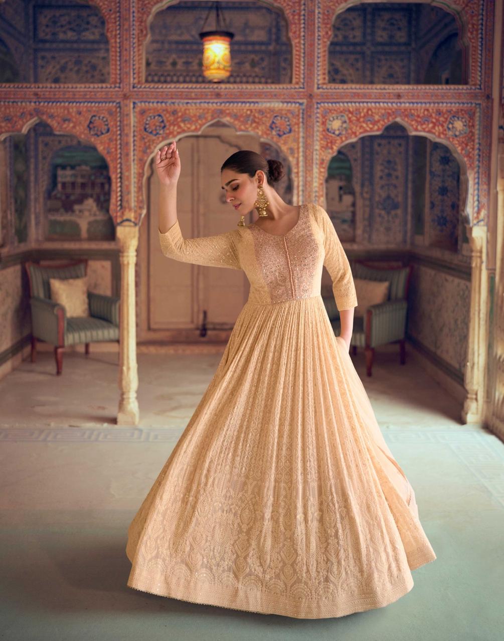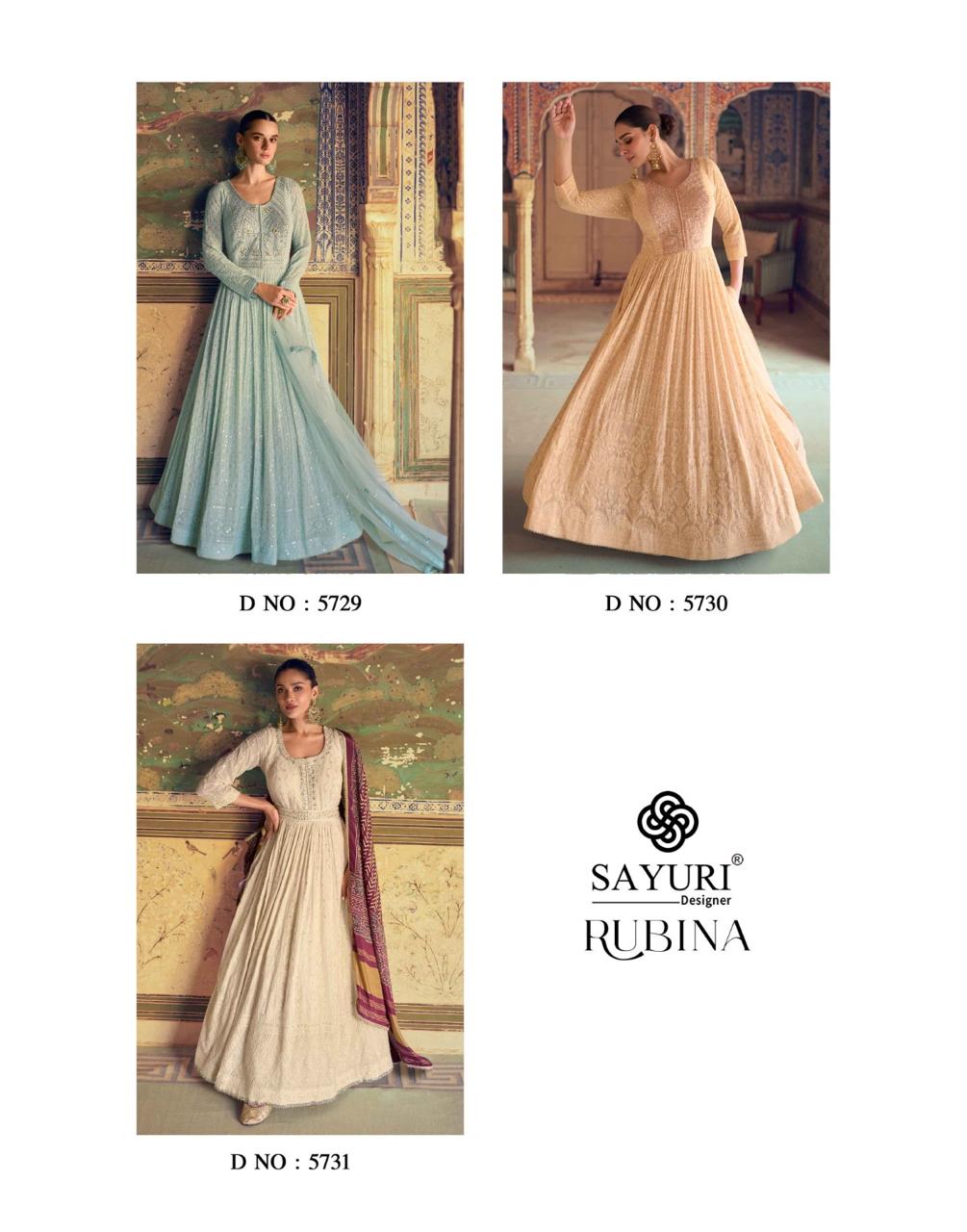 Introducing Rubina by Sayuri Designer – an elegant catalog featuring full heavy-look chikankari embroidered dresses crafted from premium real georgette. Each piece is paired with a beautifully embroidered dupatta, designed to exude sophistication and timeless appeal. These free-size stitched dresses come in 3 unique pieces, each priced at ₹2899/- per piece (set-to-set), with a 12% GST extra. Add the grace of Rubina to your festive wardrobe today!