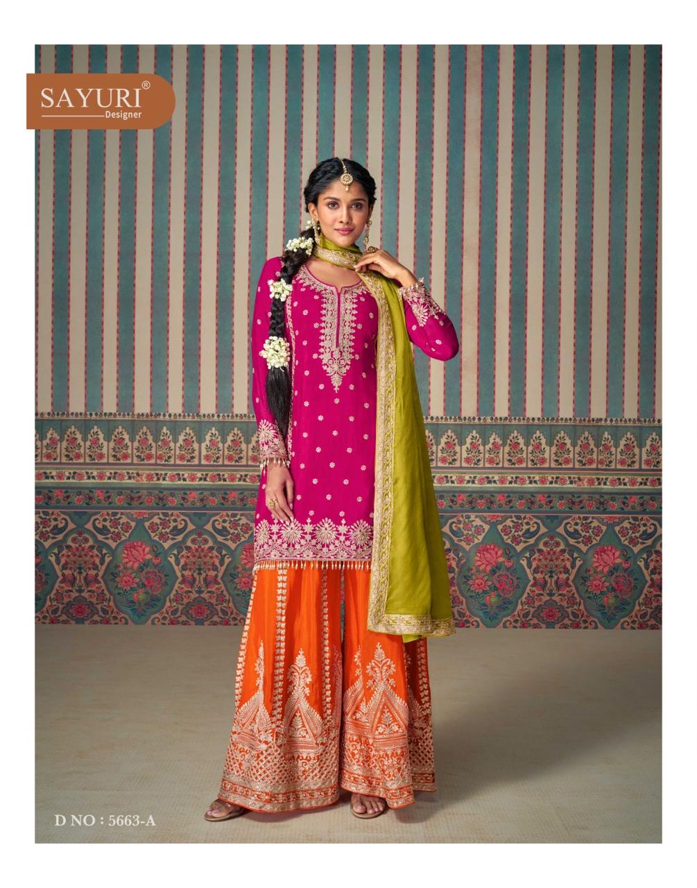 Step into elegance with Sayuri Mahi Pro, a high-end Chinon Silk collection featuring intricate embroidery and hand-embellished mirror work. Perfect for grand occasions and festivities!